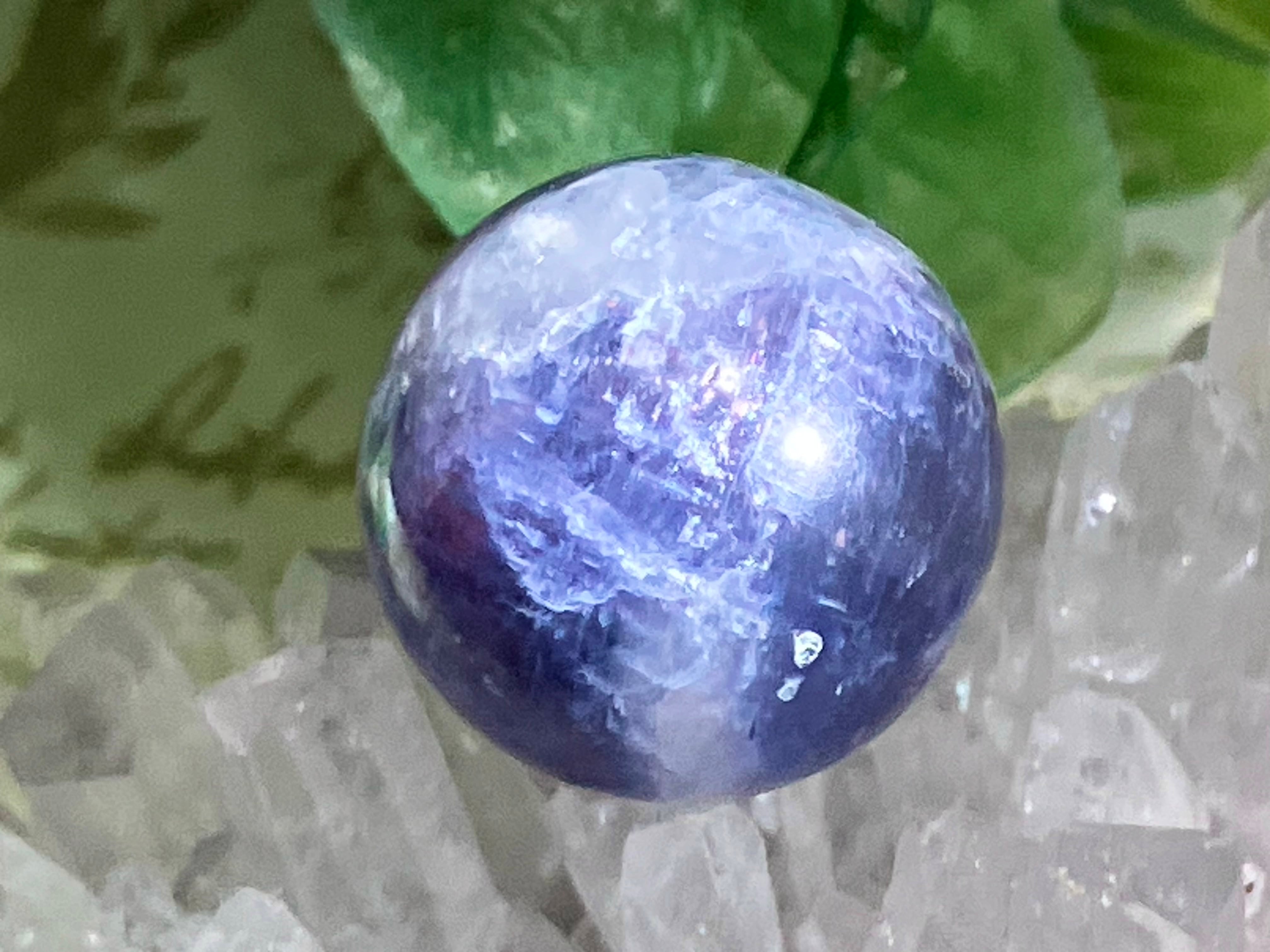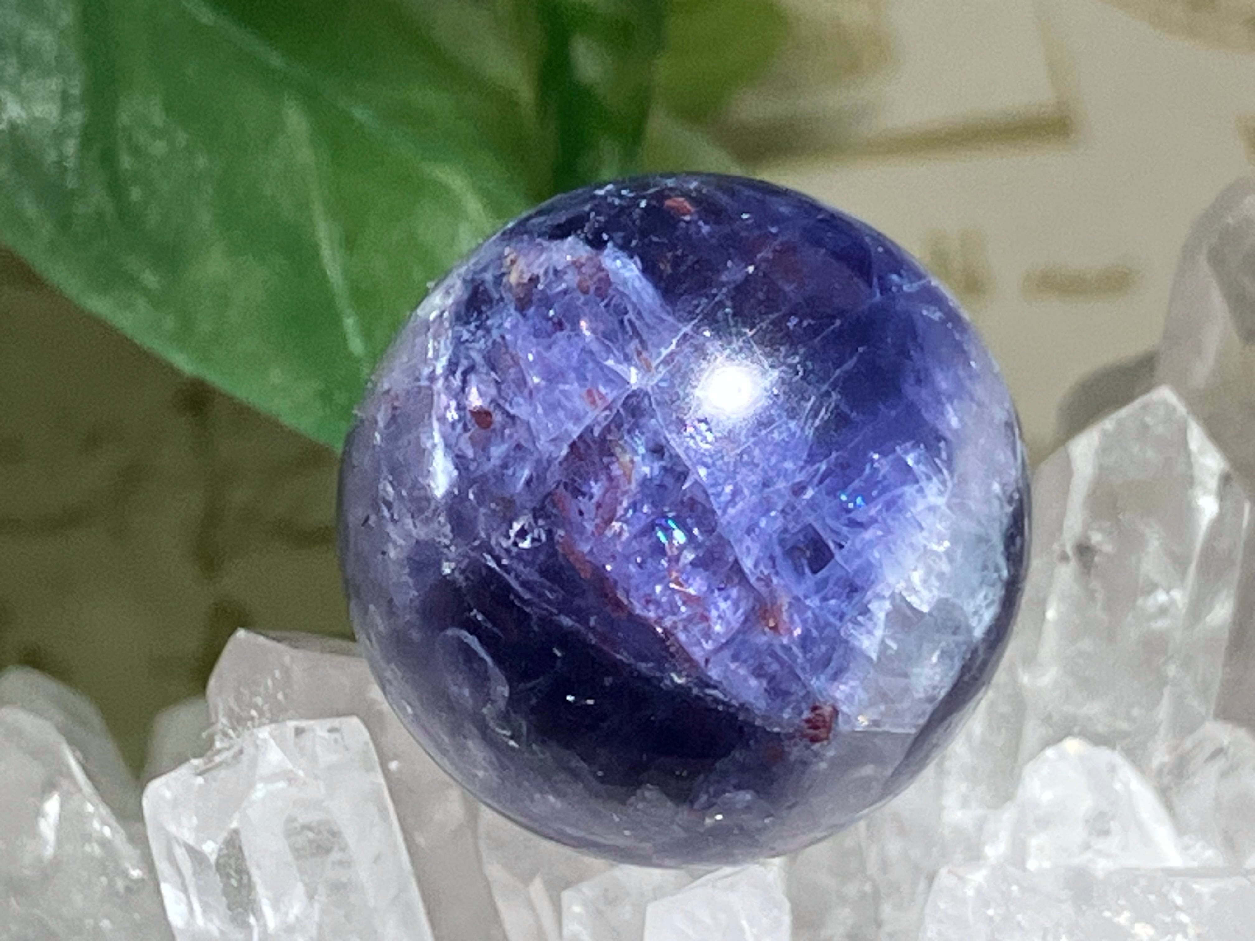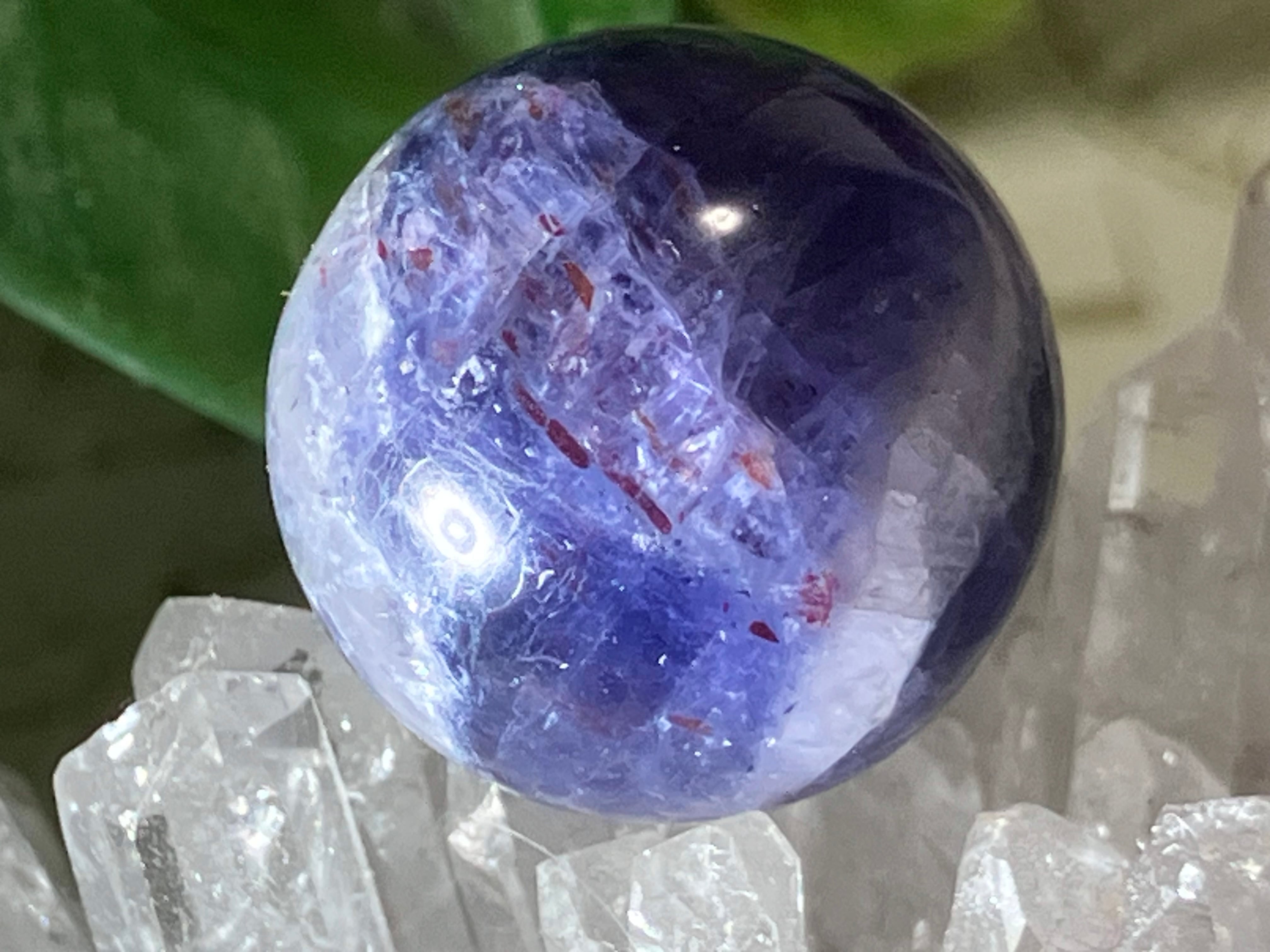 虹色のレッセンスがキラリと輝くブラッドショット アイオライトサンストーンのスフィアです- ̗̀꒰ঌ໒꒱ ̖́-