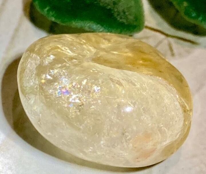 万華鏡のような素晴らしいレインボー効果が至るところに現れるイエローのシトリンクォーツの小さめタンブルです✨