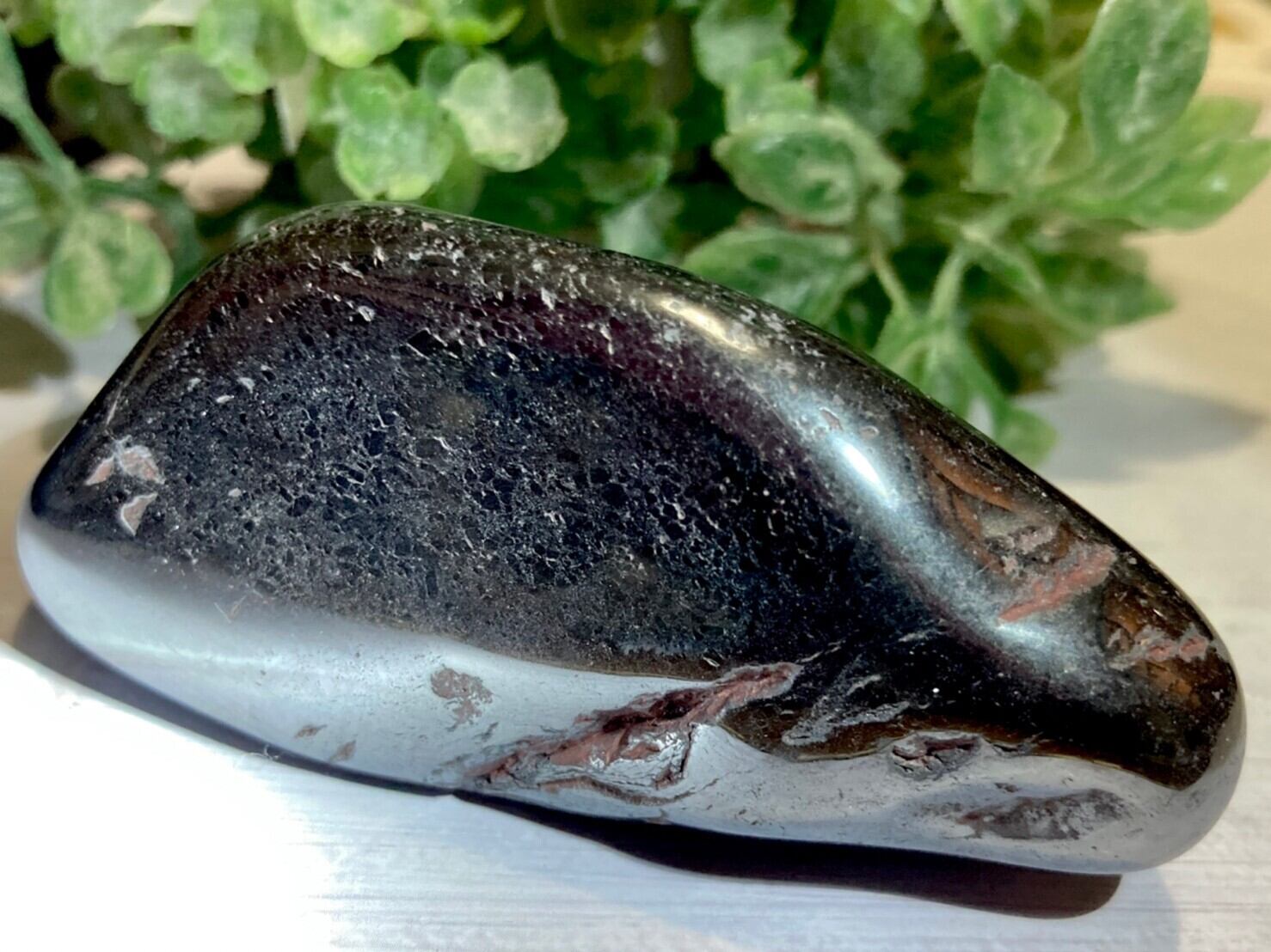 黒色の金属光沢に輝くヘマタイトのタンブル特大です。