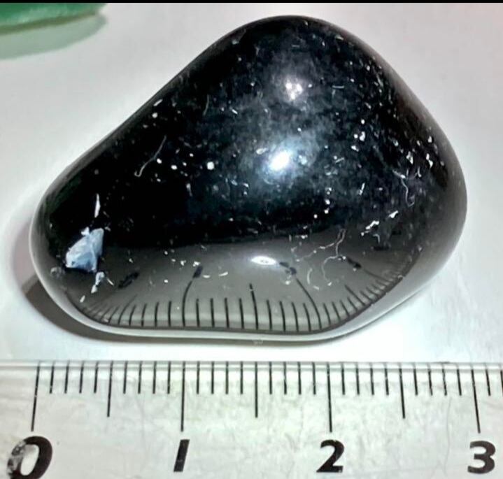 漆黒の黒水晶、虹入りモリオンクォーツタンブルです。