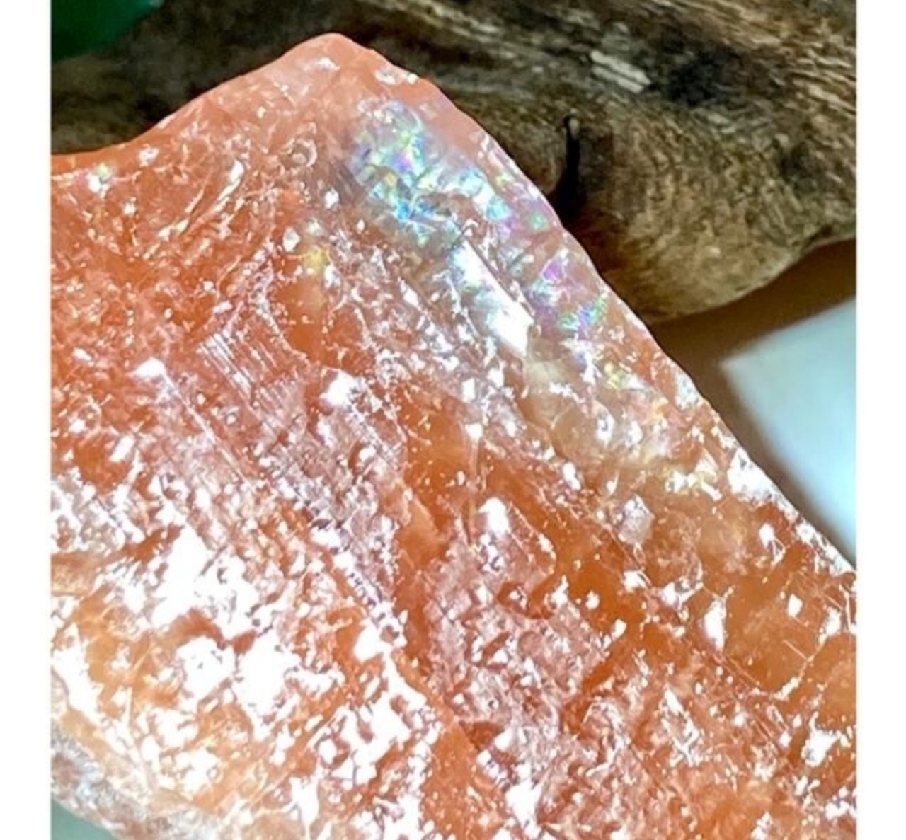 【勇気を引き出す】虹入り レッド カルサイト ラフストーン 原石 方解石