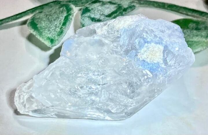 コバルトブルーの海が広がる虹入りデュモルチェライトインクォーツの虹入りラフストーンです✨