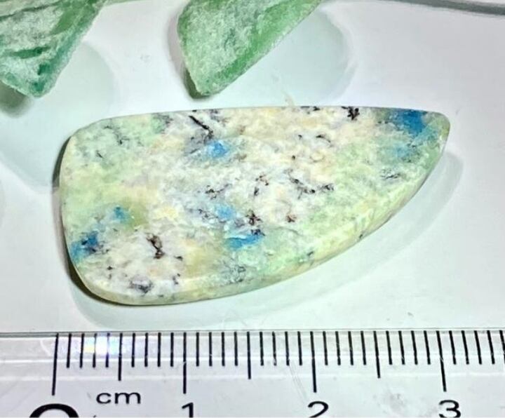 アズライトとグラナイトが共生し、美しいユニークな模様を作り出すK2ストーンの雫型ルースです✨
