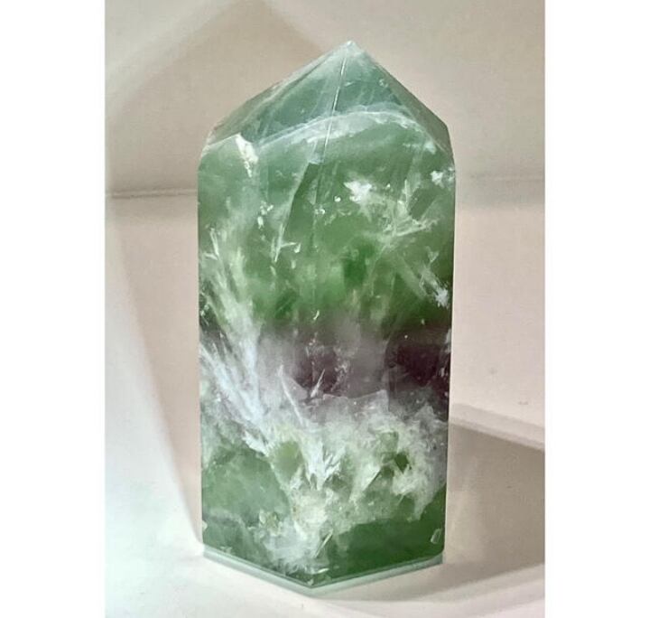 グリーン、パープル、ブルーの美しい色のフローライトの中に美しい虹の入ったインクルージョンの入ったフローライト✨