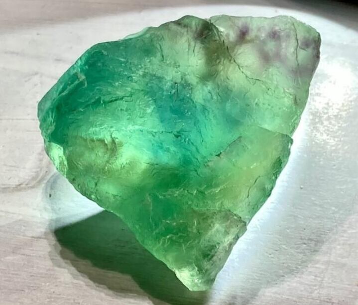 光に透かすと蒼と濃紫とエメラルドグリーンのグラデーションが浮かび上がる、フローライトマルチカラーラフストーンです❁⃘*.゜