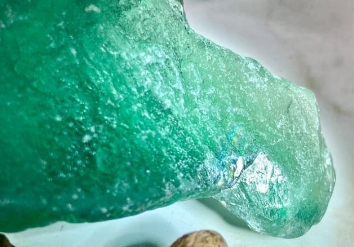 エメラルドグリーンが美しい、フローライトのラフストーンです❁⃘*.゜
