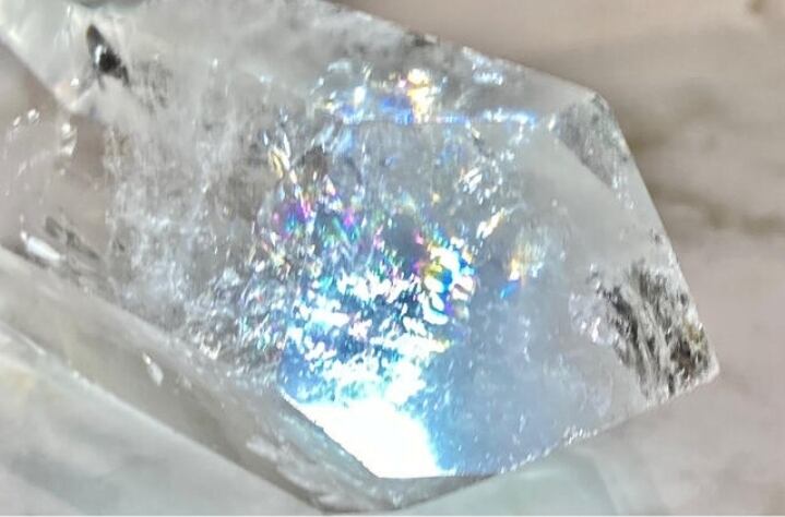 万華鏡のようなレインボーが壮麗なダブルポイントエンジェルブレッシングクォーツのポリッシュです✨
