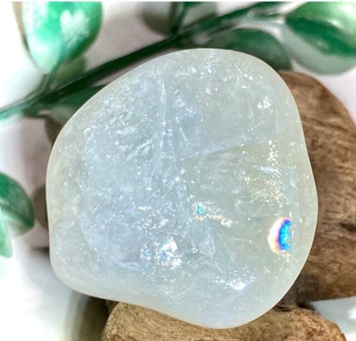 万華鏡のようなレインボーが映えるレモンクォーツのタンブルです❁⃘*.゜