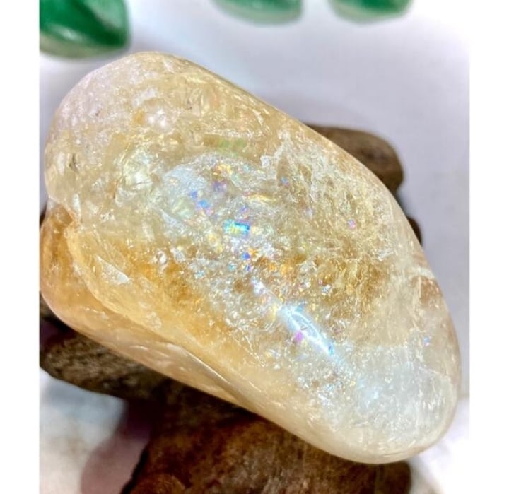 虹がギラギラでエネルギッシュなシトリンクォーツタンブルです˚✧₊⁎