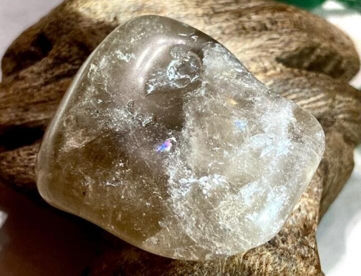 万華鏡のような虹が入ったスモーキークォーツのタンブルです❁⃘*.゜