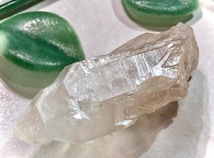 レムリアンシードクォーツには、柱面にバーコードのように見える横筋のリッジ(レムリアンリッジ)が入っており、同時にレコードキーパーと呼ばれる三角形の刻印が入っていることもあります。