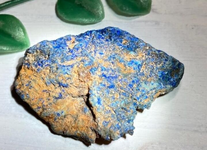 また、アズライトは中国とエジプト文明でも崇拝され、とりわけ中国では、「天の石」として知られています。両方の文明において、聖なる建造物の装飾に使われてきました。