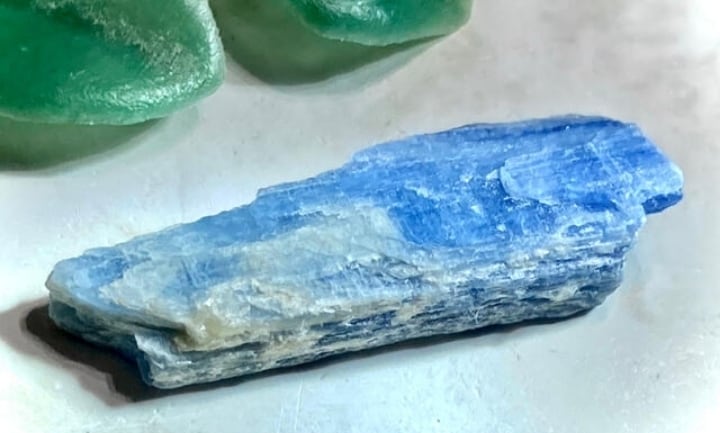 鮮やかな美しい藍色の結晶、カヤナイトストーンは潜在能力を発揮して、新たな自分の道を切り開いていくパワーのあるストーンと言われています✨