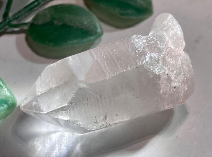 レムリアンシードクォーツには、柱面にバーコードのように見える横筋のリッジ(レムリアンリッジ)が入っており、同時にレコードキーパーと呼ばれる三角形の刻印が入っていることもあります。