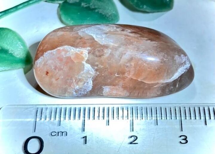 ピーチと水浅葱のマーブル模様を切り取ったような、ピーチムーンストーンのタンブルです˚✧₊⁎