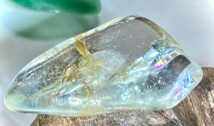 ギラギラに輝くレインボーが入ったスカイブルートパーズのタンブルです˚✧₊⁎
