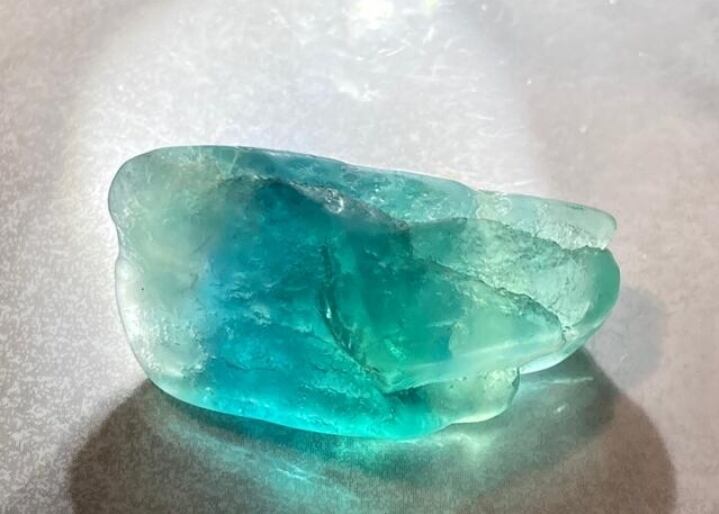 アップルグリーンとマリンブルー、ホワイトのグラデーションが美しいマルチカラーフローライト原石です(*^^*)