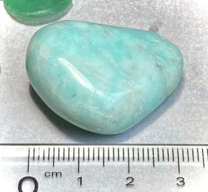 エメラルドグリーンが美しいアマゾナイト(天河石)のタンブルです。