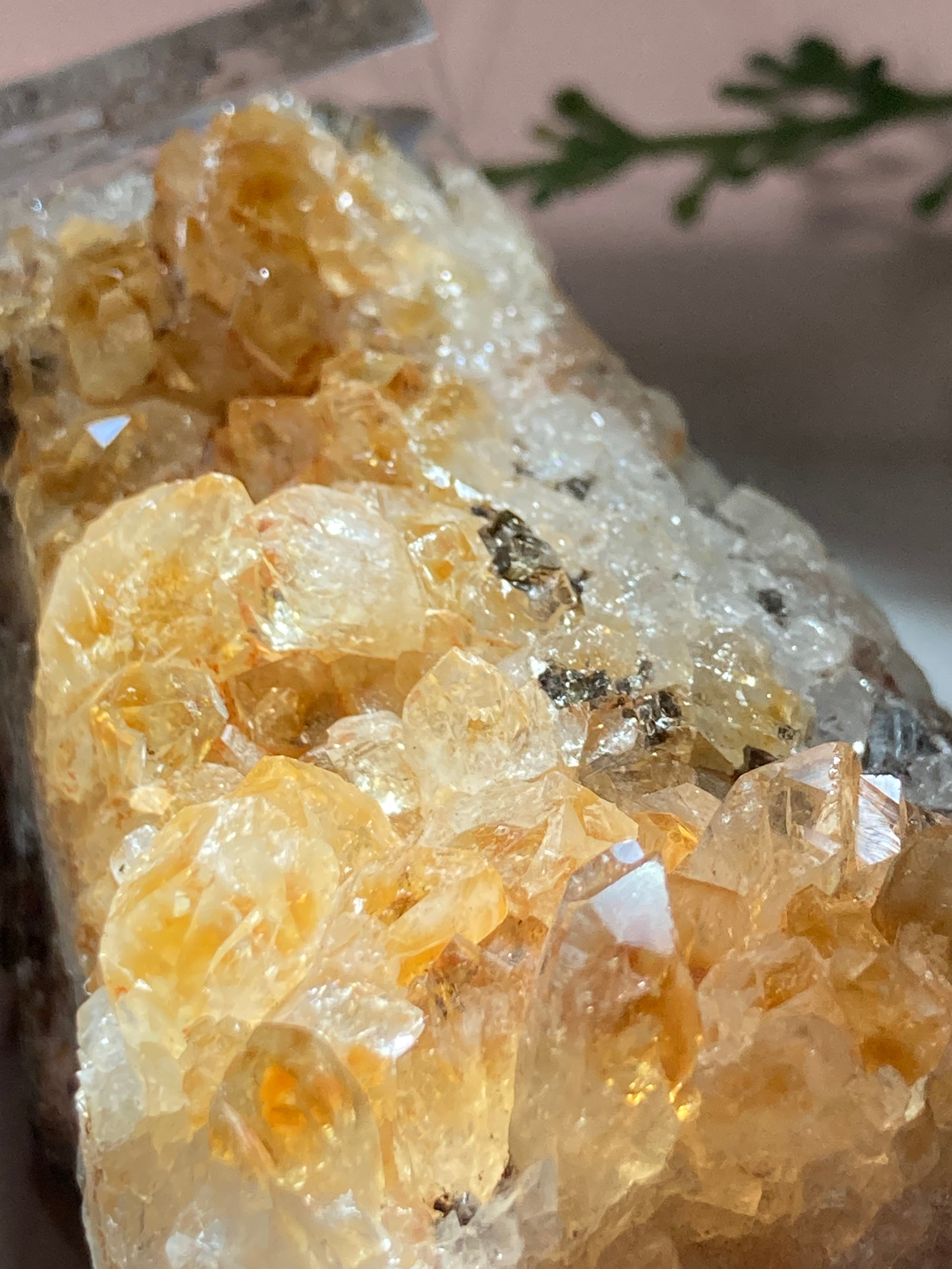 琥珀色が大人びた雰囲気を醸し出すシトリンクォーツの土台付きクラスターです✿*:・