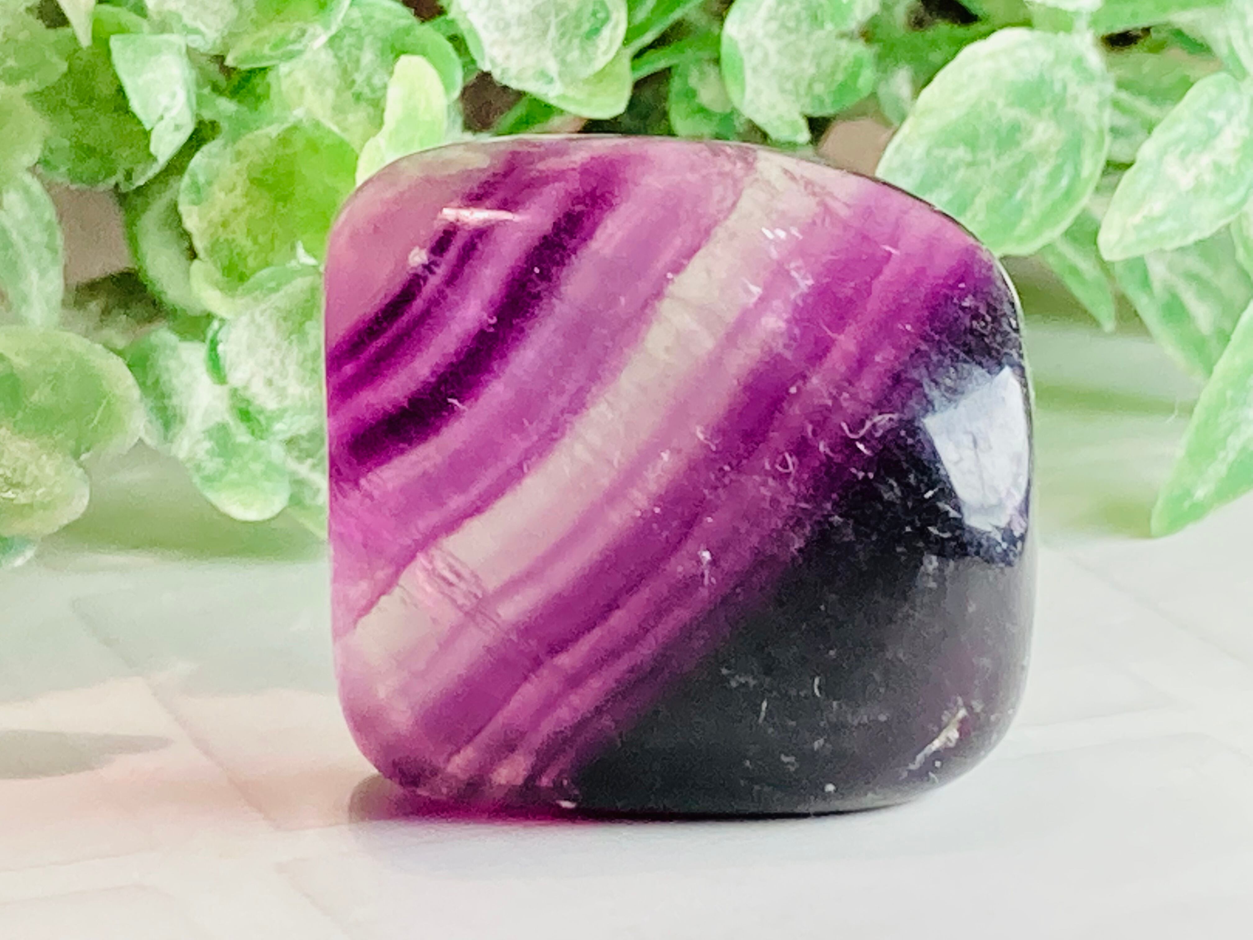 柔らかな菖蒲色のストライプが美しいフローライトのバイカラータンブルです(*^^*)