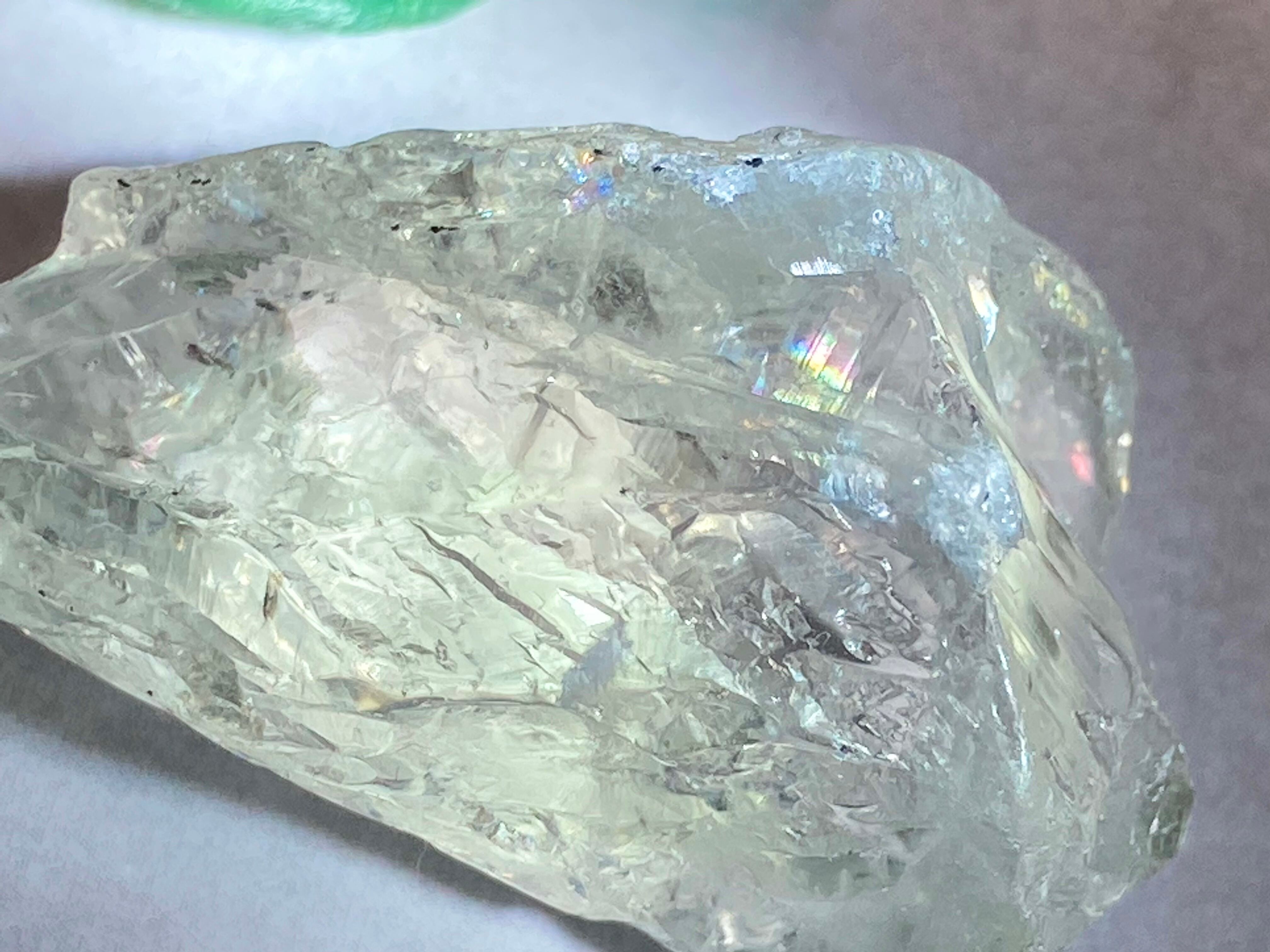 【希少】レインボー グリーンアメジスト プラシオライト 原石 ラフストーン