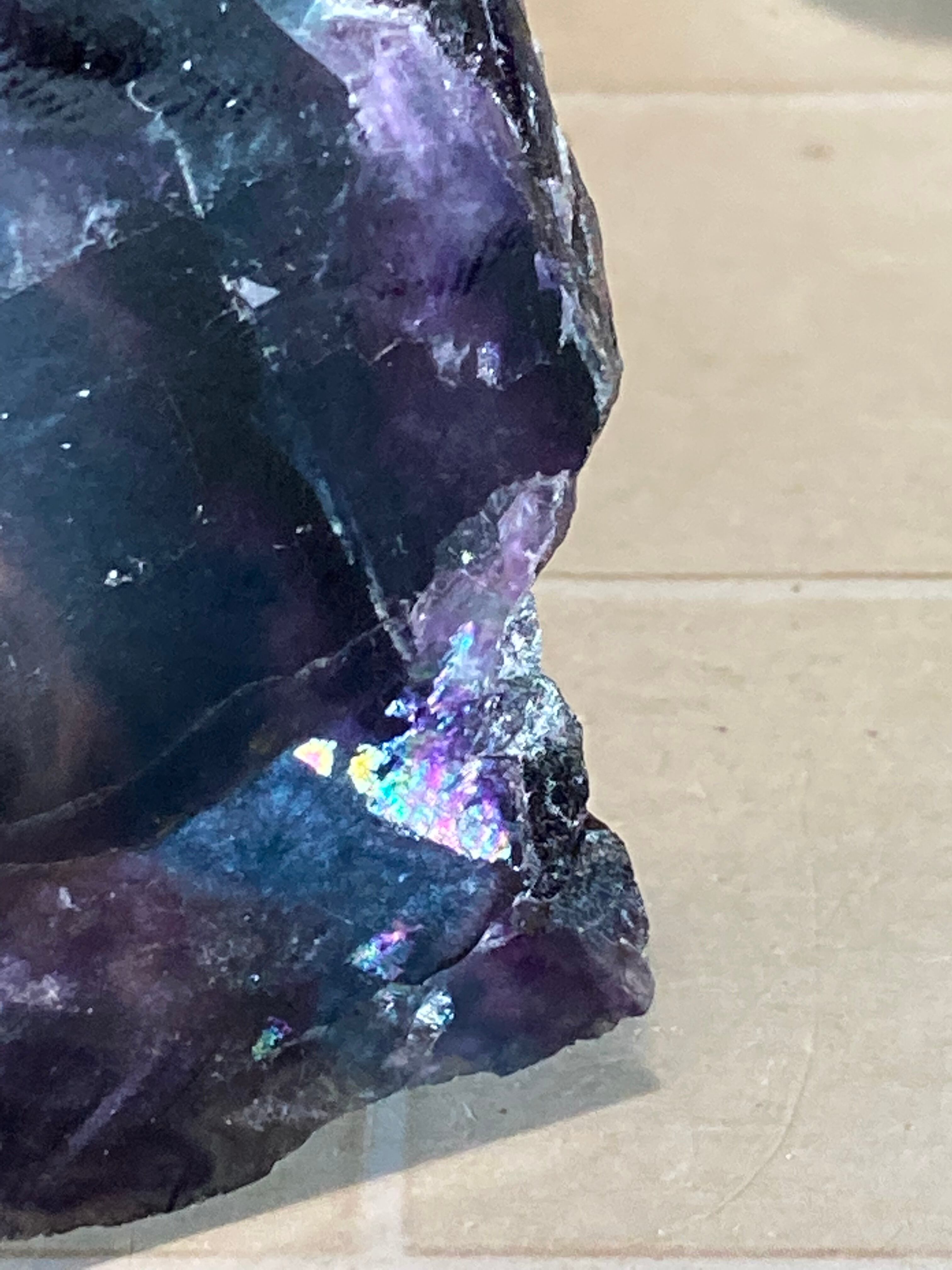 エメラルドグリーンとブルー、パープルのグラデーションが美しいマルチカラーフローライト原石です(*^^*)