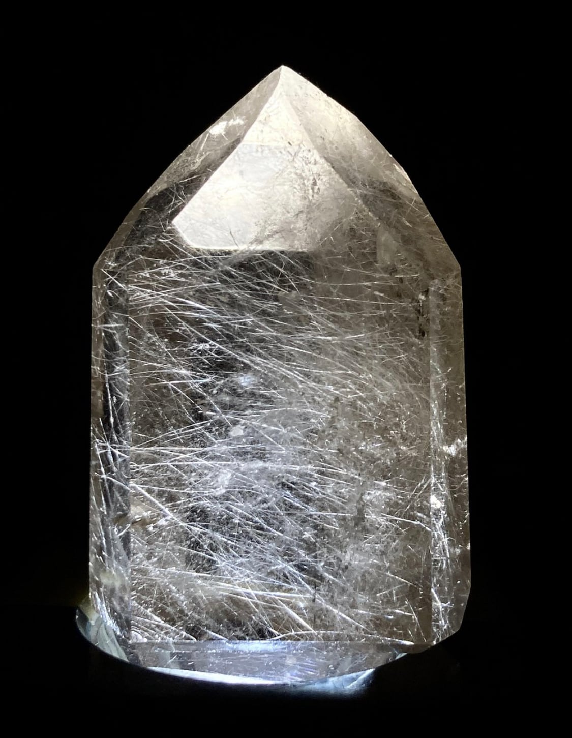 クリスタル・ジャーニーの作者ジェーンアン・ドウにちなんで命名されたマスタークリスタル。先端部(ファセット、錐面)が7・3・7・3・7・3角形と交互に構成される美しい幾何学的パターンを持つ水晶。