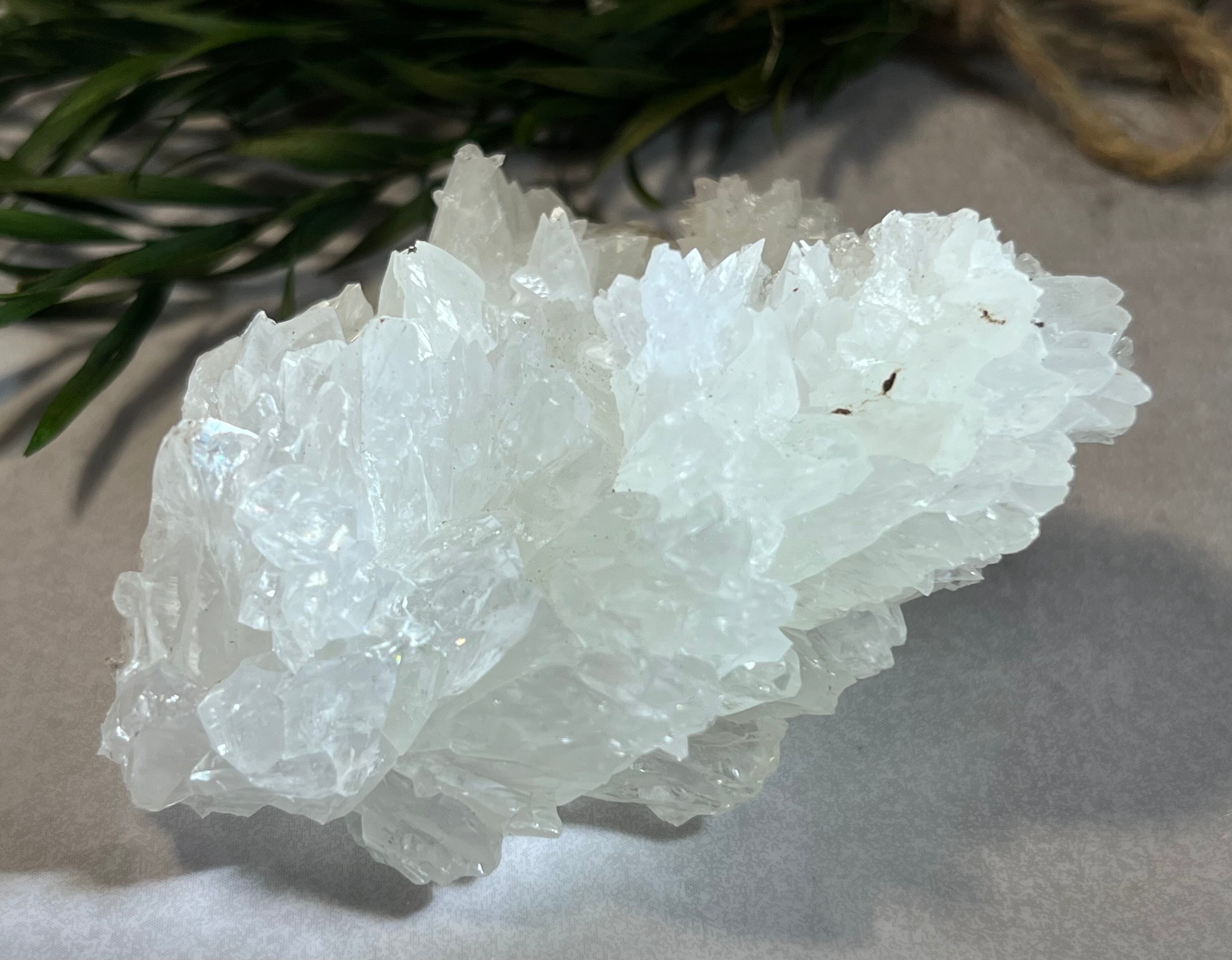樹氷のような微細な結晶がキラキラと光で反射し、水晶のクラスターとはまた一味違った美しさを持っています。