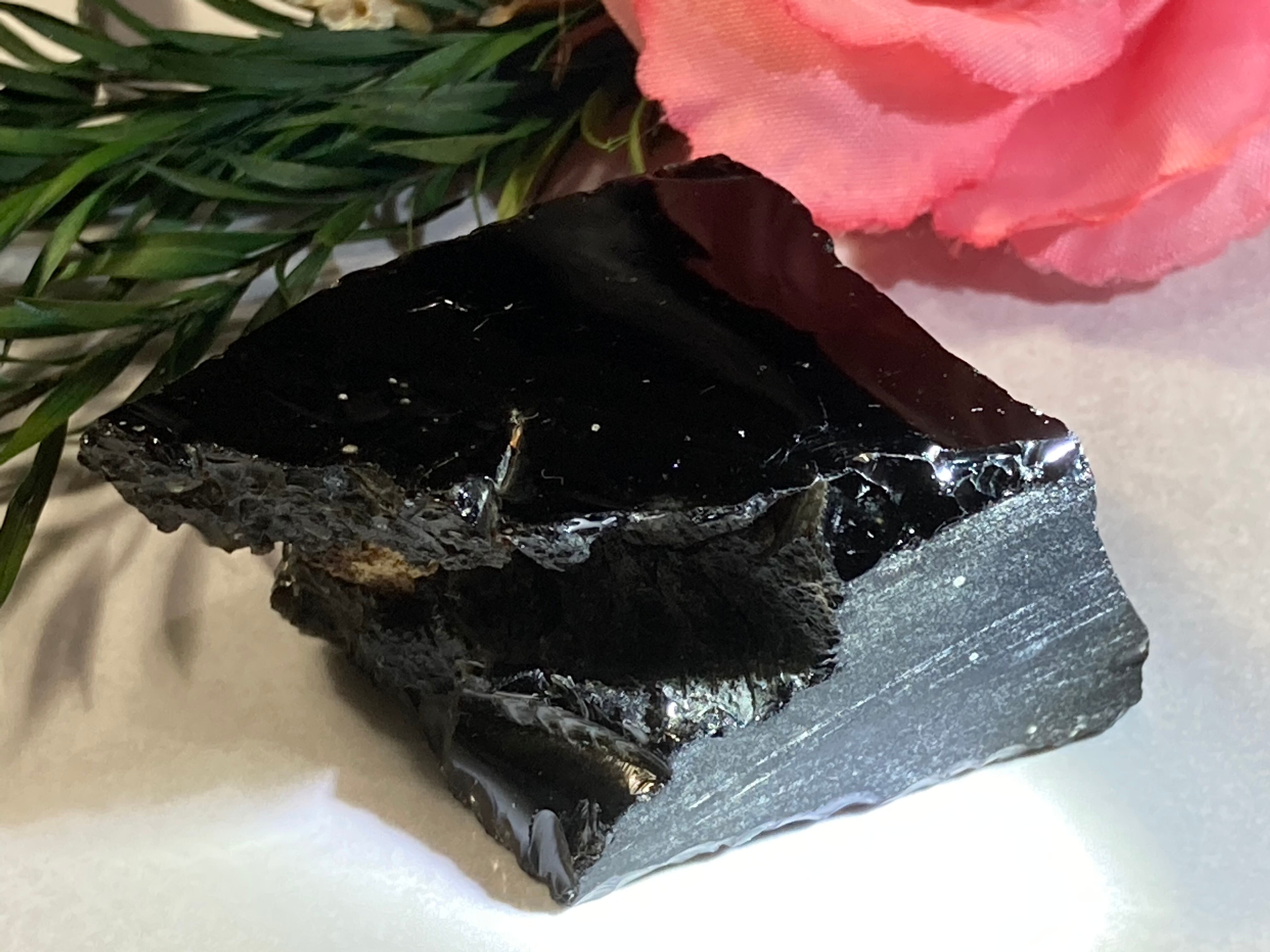 こちらは重厚なブラックが邪気を払うオブジディアンのラフストーンです❁⃘*.゜