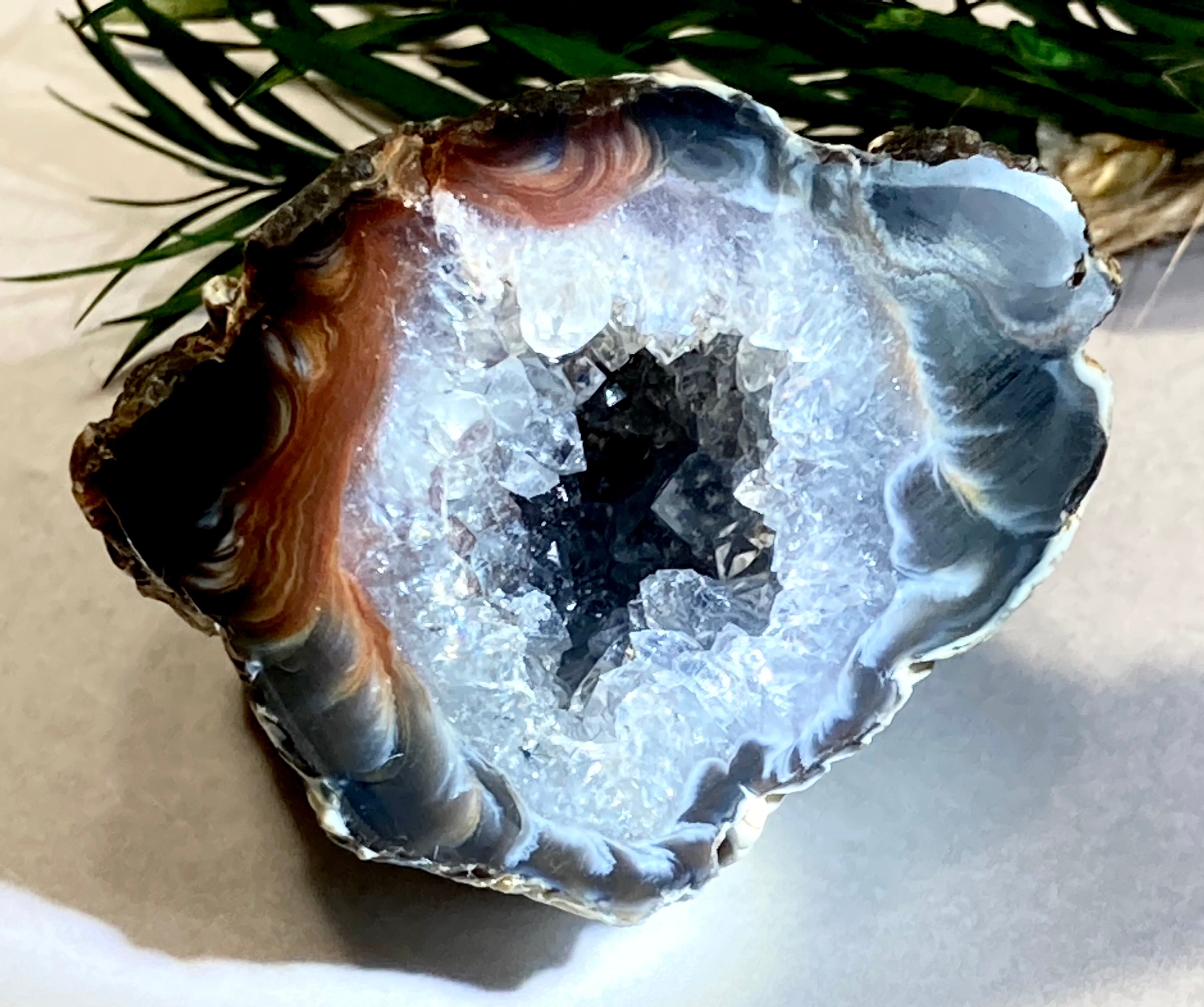 レース瑪瑙(アゲート)の結晶がキラキラと輝くジオードになります(o^^o)