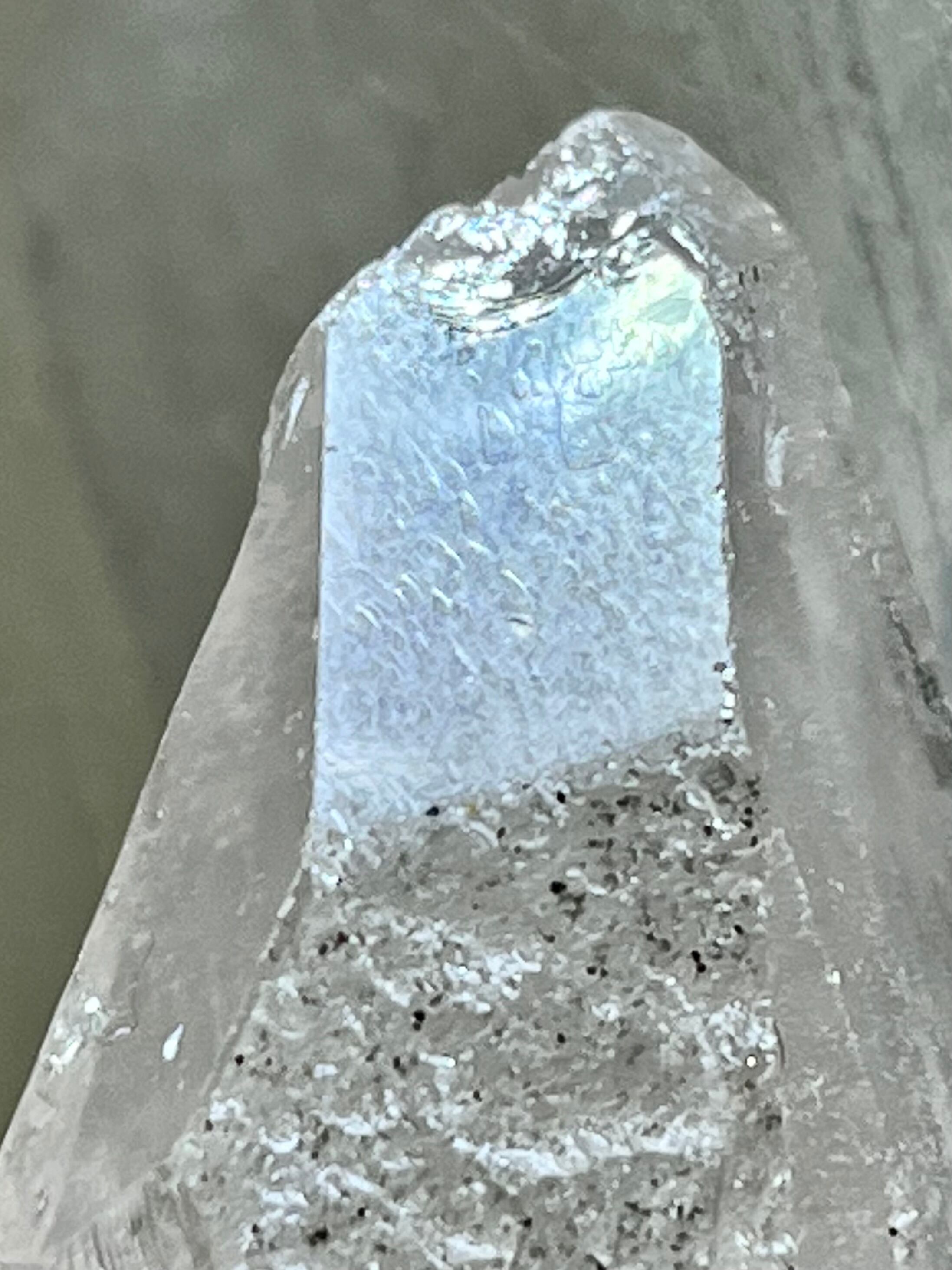水晶の先端部(ファセット、錐面)に三角形▲の凹凸が見られるものをレコードキーパーといいます。