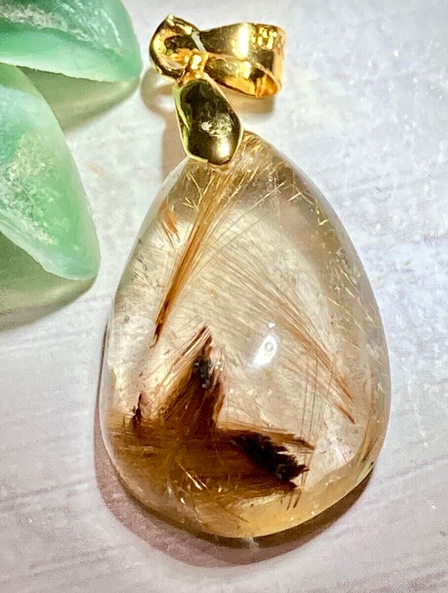お金招来に効果があると名高いタイチンゴールドルチルの束が入ったペンダントトップです✨