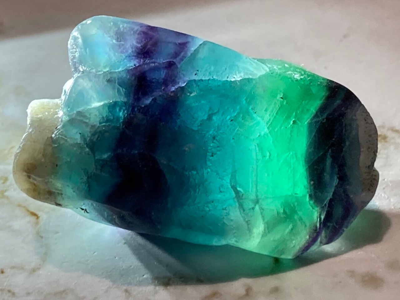 エメラルドグリーンとブルーのグラデーションが美しい、フローライトマルチカラーラフストーンです❁⃘*.゜