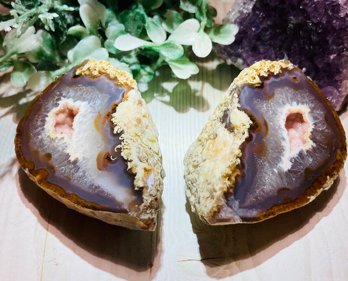 ピンクアメジストが生えた大変珍しいアゲートジオードの一玉セットです❦͙