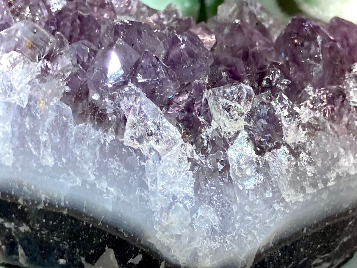 所々に金色や光輝く斑点【ゲーサイト】が入っていて透明度も高く価値の高いアメジスト原石となります!