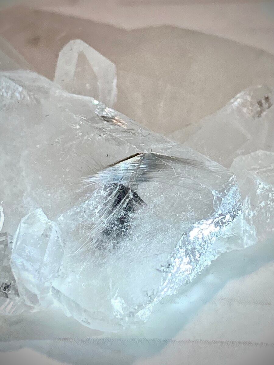 結晶の中にふわふわとしたシルバールチルが内包されている極めて珍しいストーンになります☪︎⋆˚