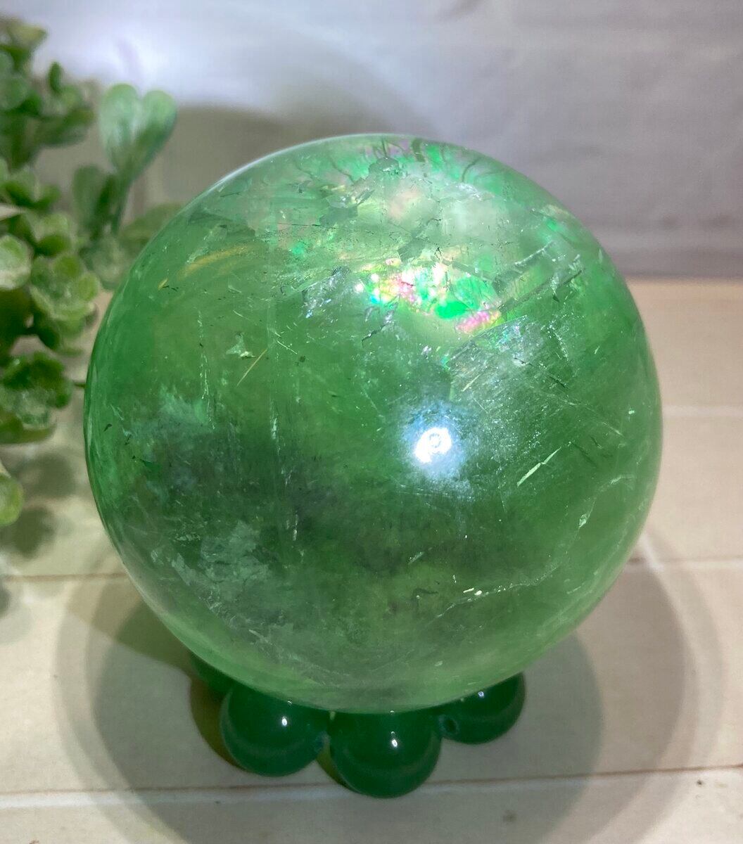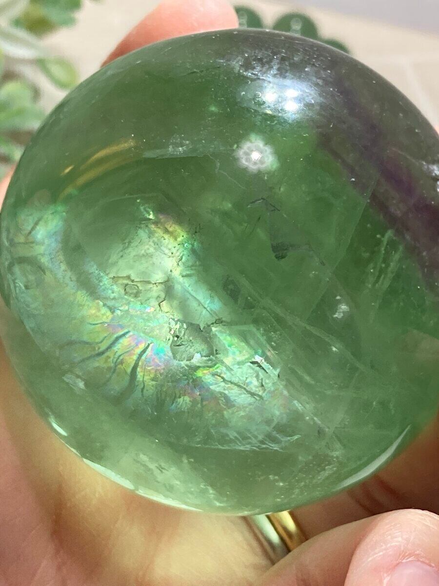 バイカラー✿*:・ レインボー フローライト 蛍石 スフィア (台座付き)