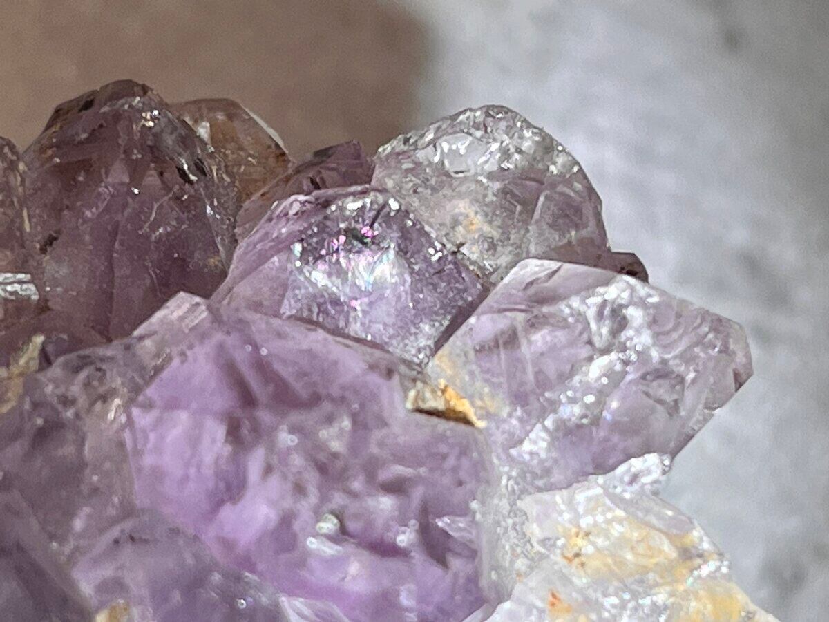 ゲーサイトはアメジストとして成長する段階で内包されますので表面に付くわけではなく原石の内側に存在します。全てのアメジストに内包するものではなく