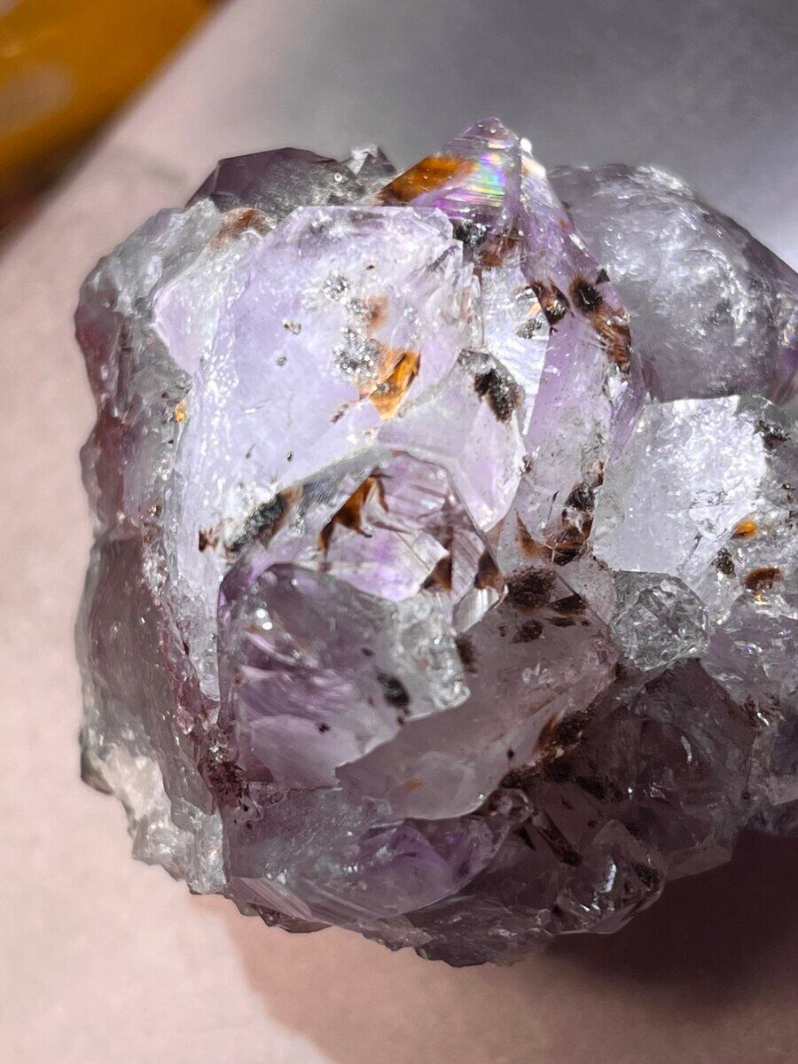鉄分が赤く発色している結晶やレインボーが見られるレッドアメジストです(❀ᴗ͈ˬᴗ͈)⁾⁾