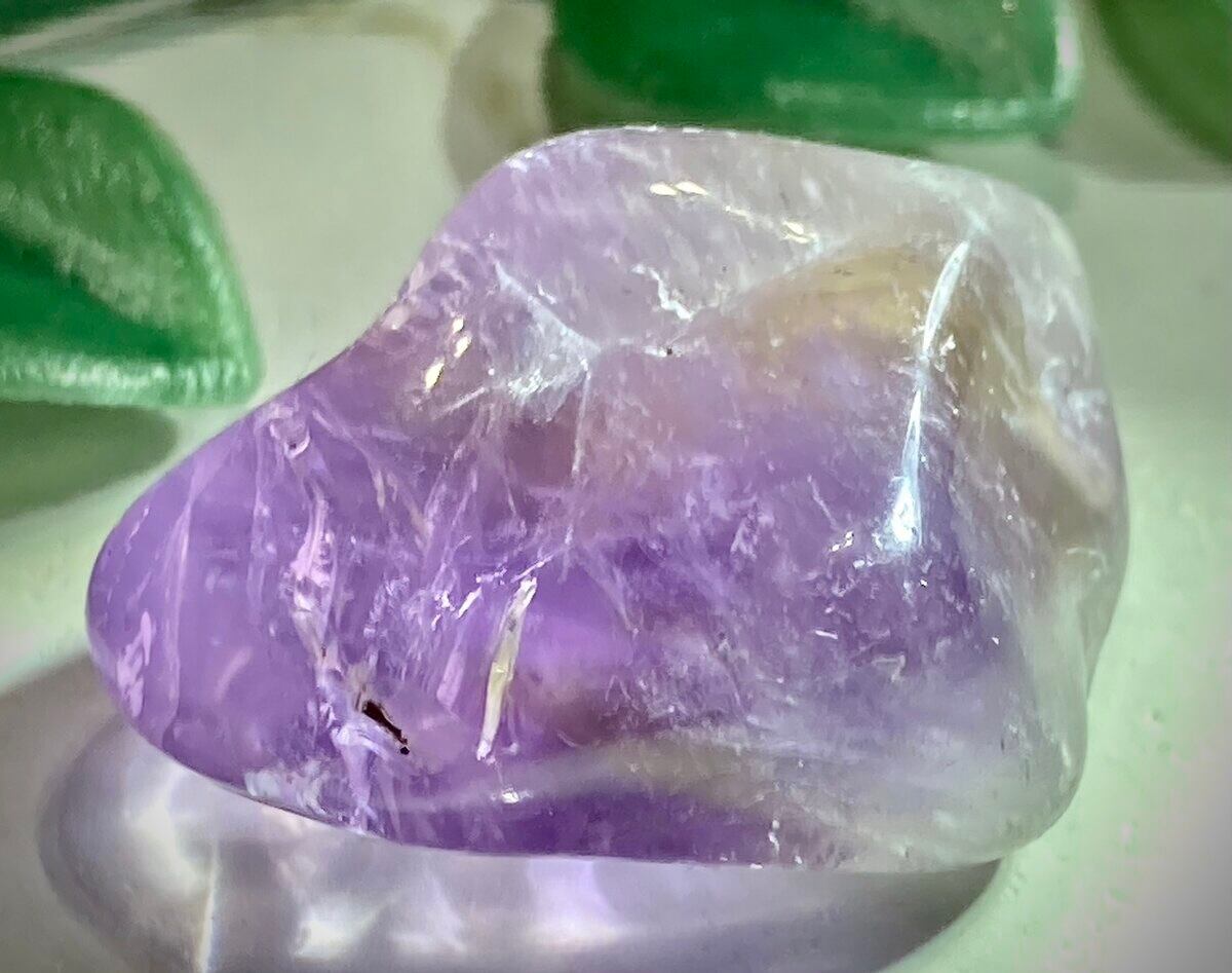 ライトを当てる角度によっては美しいレインボーが現れるアメトリンのタンブルです✨