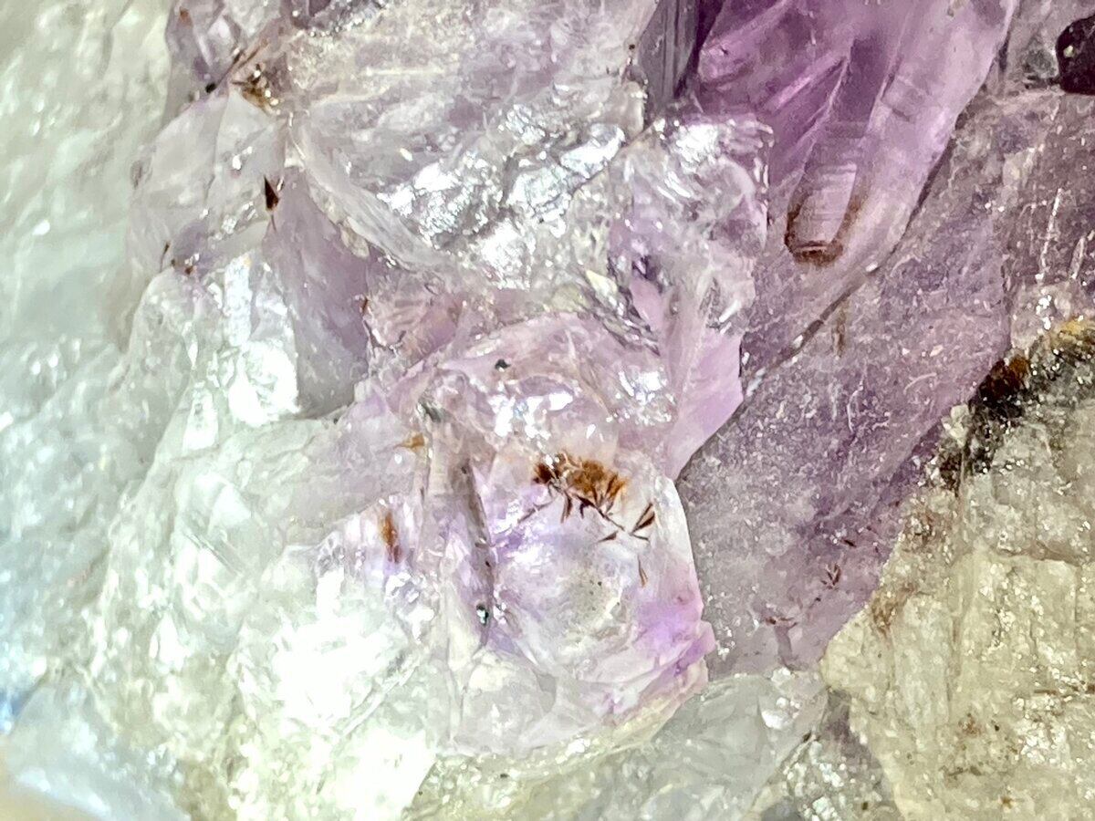 また、金糸のような斑点【ゲーサイト】も入っていて透明度も高く価値の高いアメジスト原石となります!