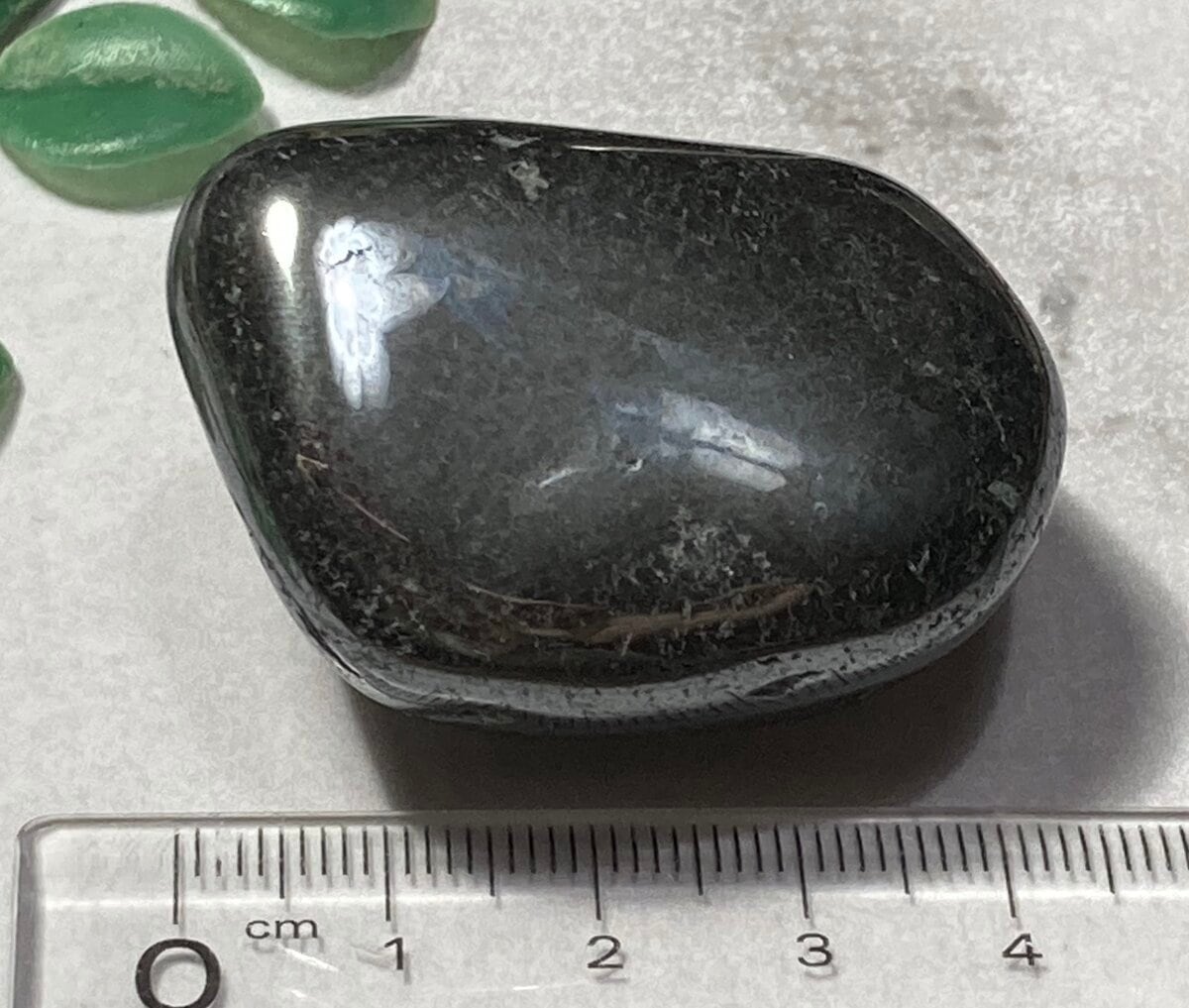 黒色の金属光沢に輝くヘマタイトのタンブルです。