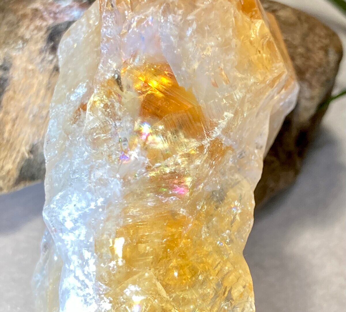 綺麗なレインボー効果が至るところに現れるシトリンクォーツのラフストーンポイントです❁⃘*.゜