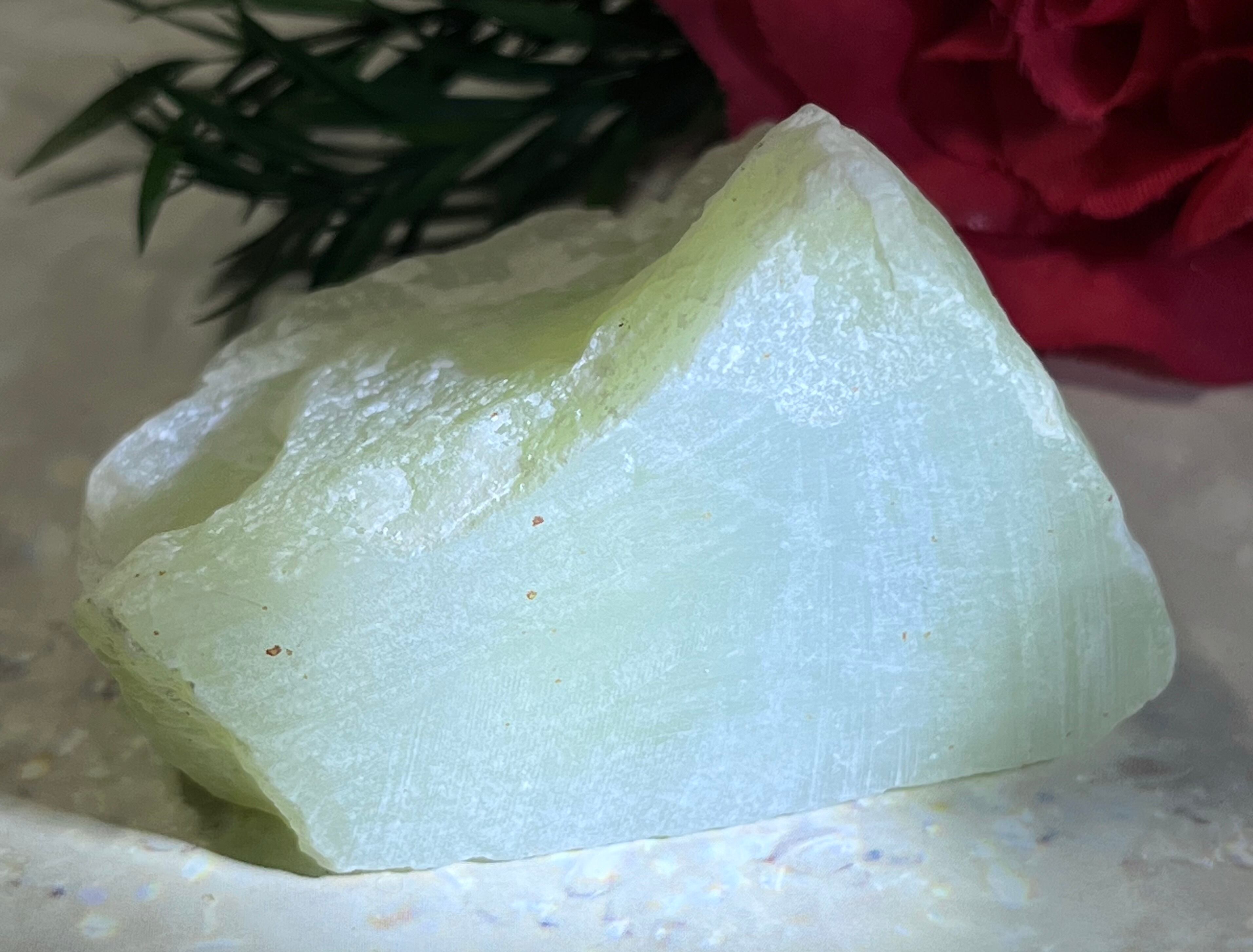 柔らかなグリーンが安らぎを齎すネフライトのラフストーンです✨