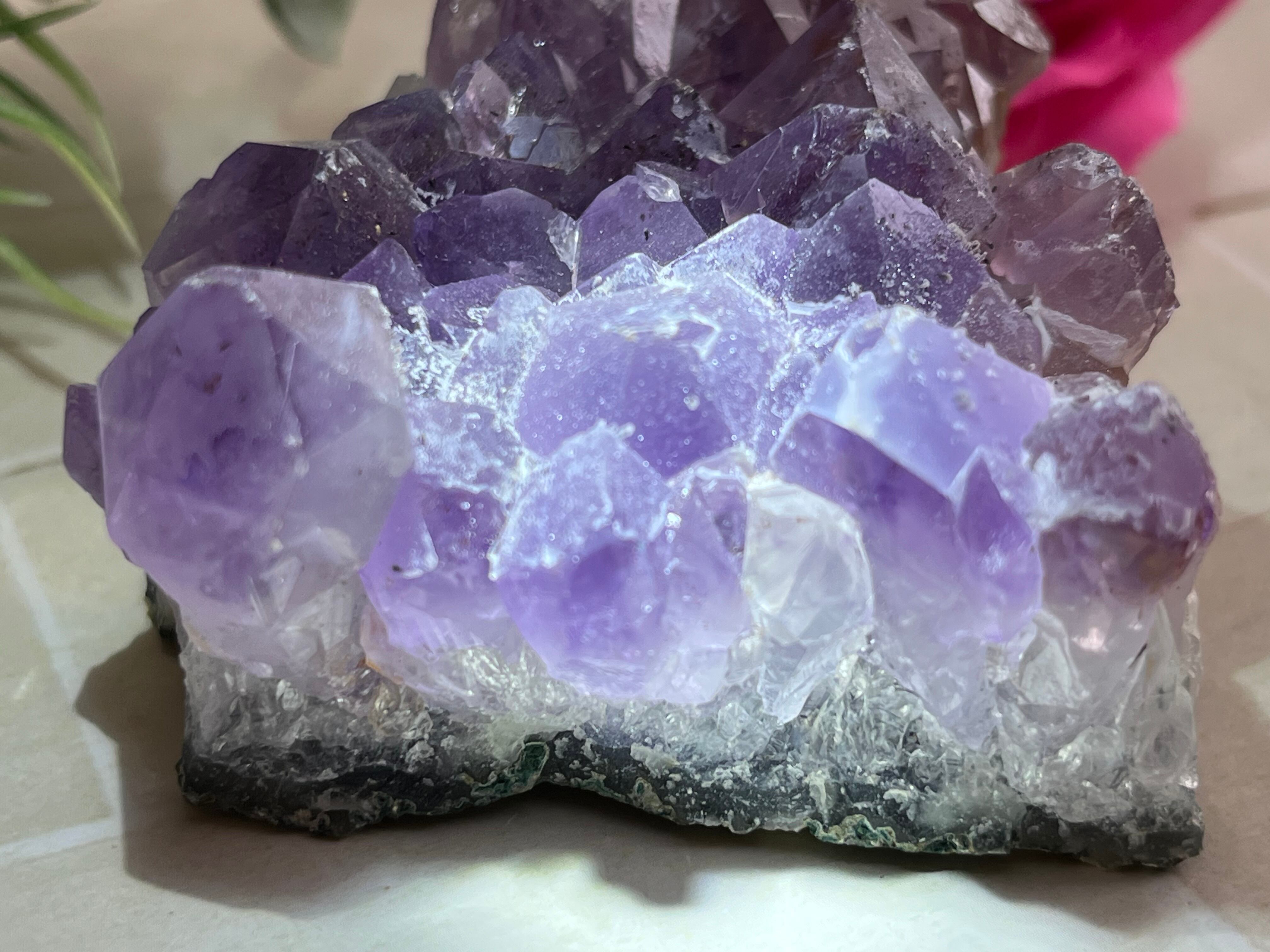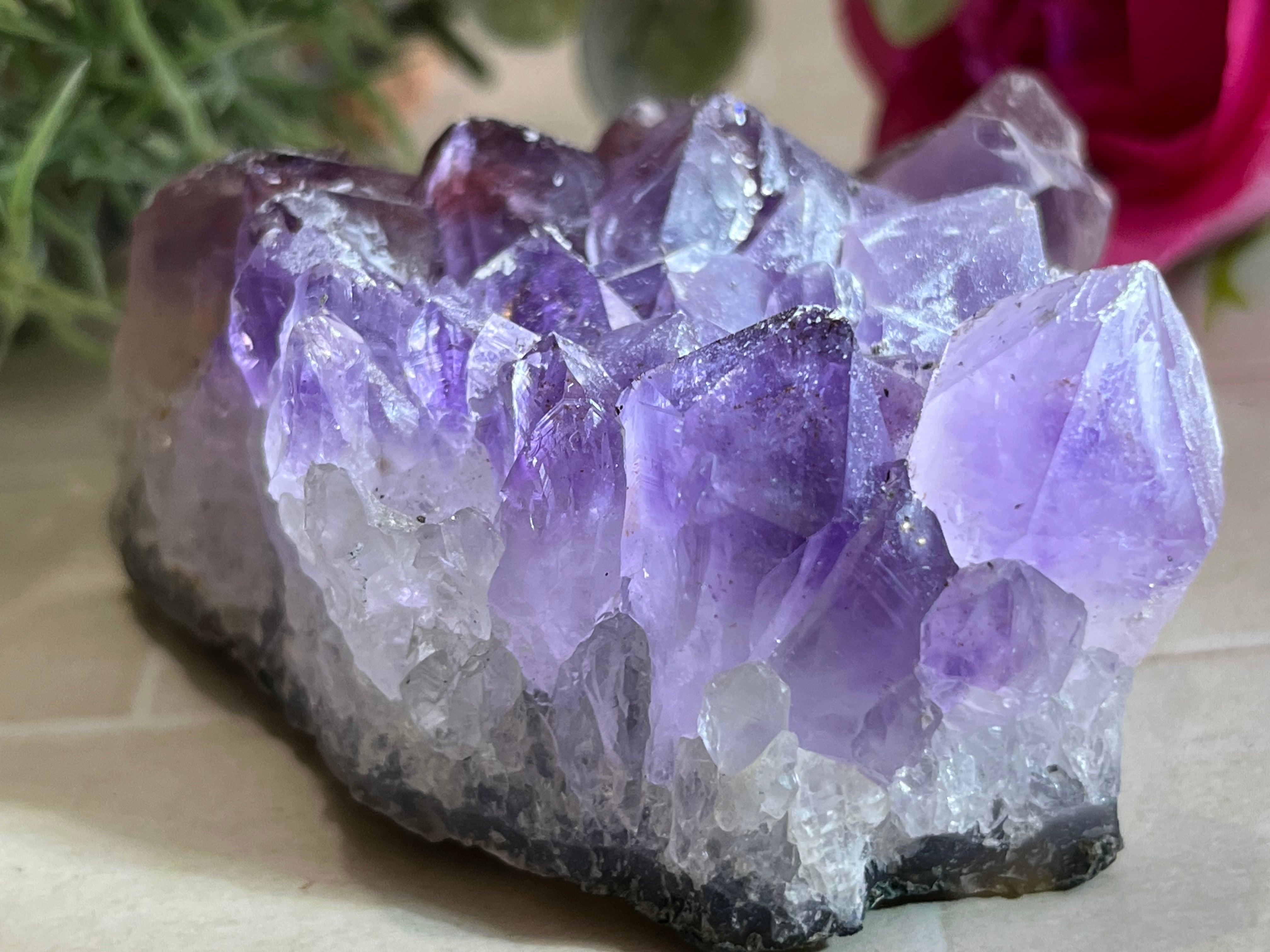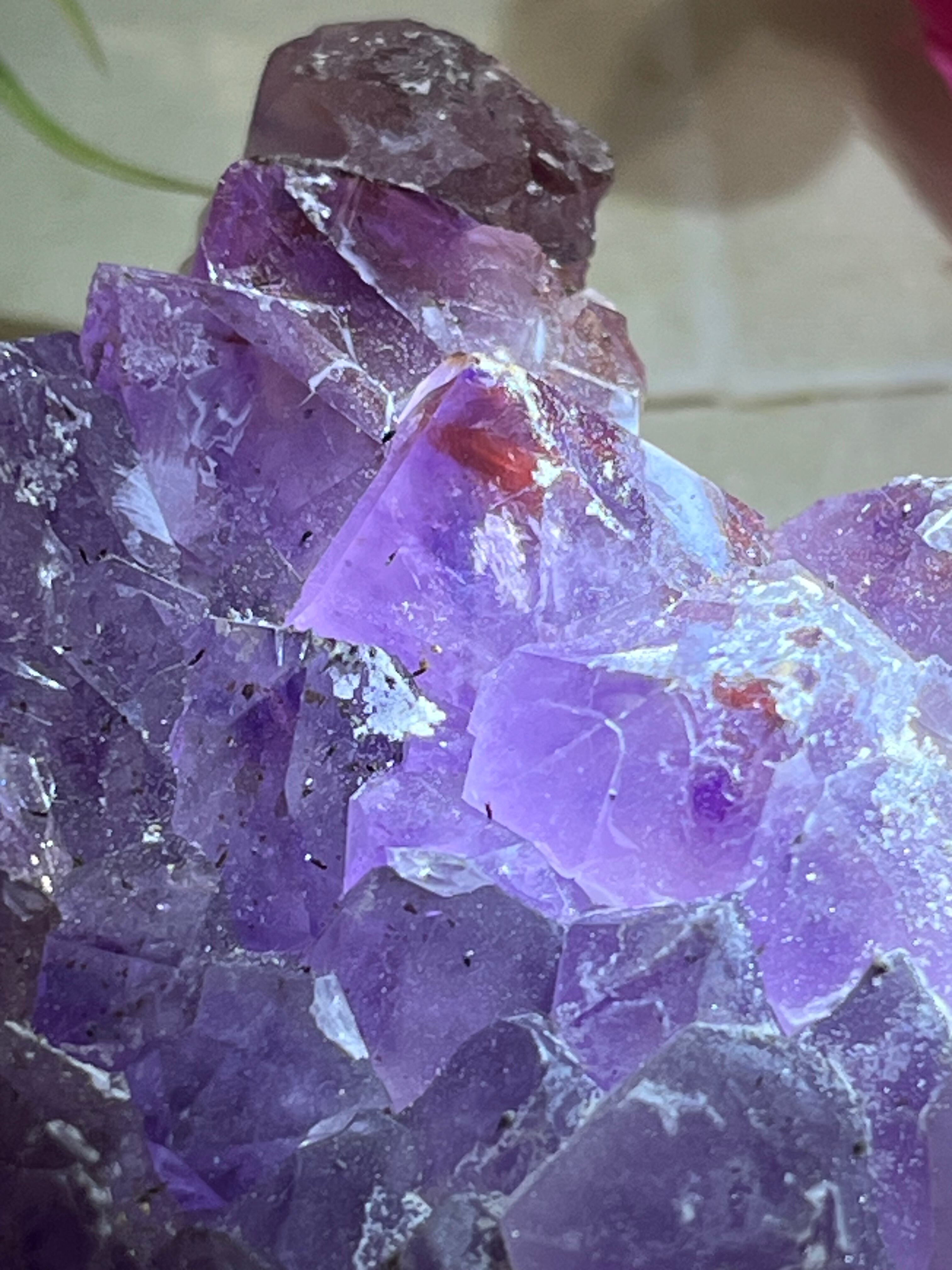 レッドアメジストのように鉄分による発色が見られる結晶もあるアメジストクラスターです- ̗̀꒰ঌ໒꒱ ̖́-
