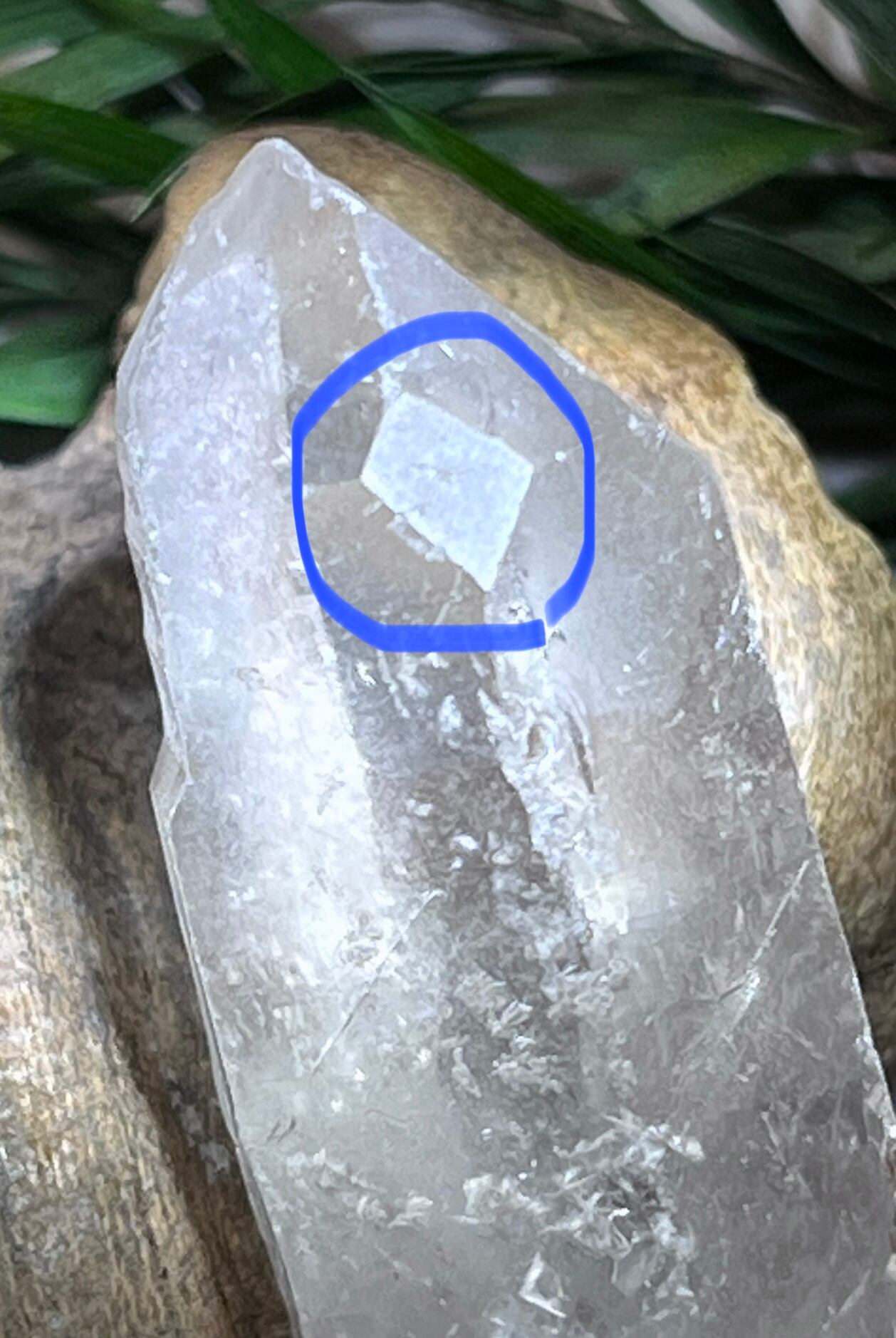 レムリアンシードクォーツには、柱面にバーコードのように見える横筋のリッジ(レムリアンリッジ)が入っており、同時にレコードキーパーと呼ばれる三角形の刻印が入っていることもあります。