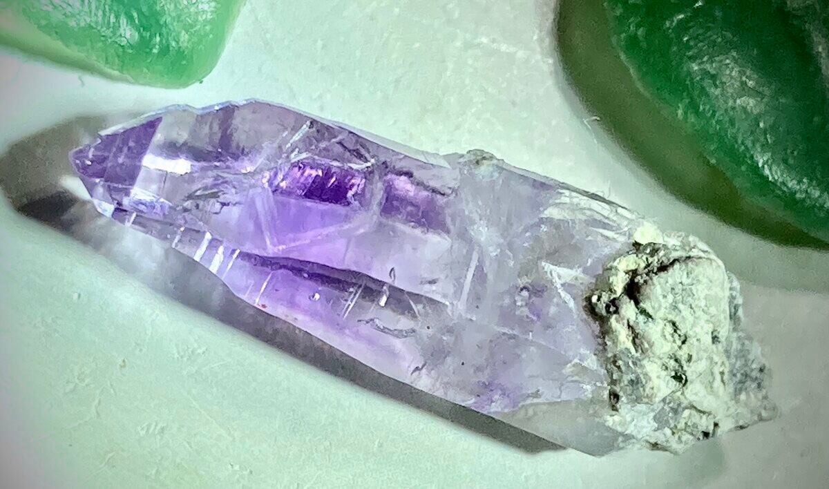 ベラクルスアメジストは、メキシコのベラクルス州にあるベラクルス鉱山で産出されるアメジストで、ポイントが細長く透明感のある淡いラベンダーカラーが特徴です。