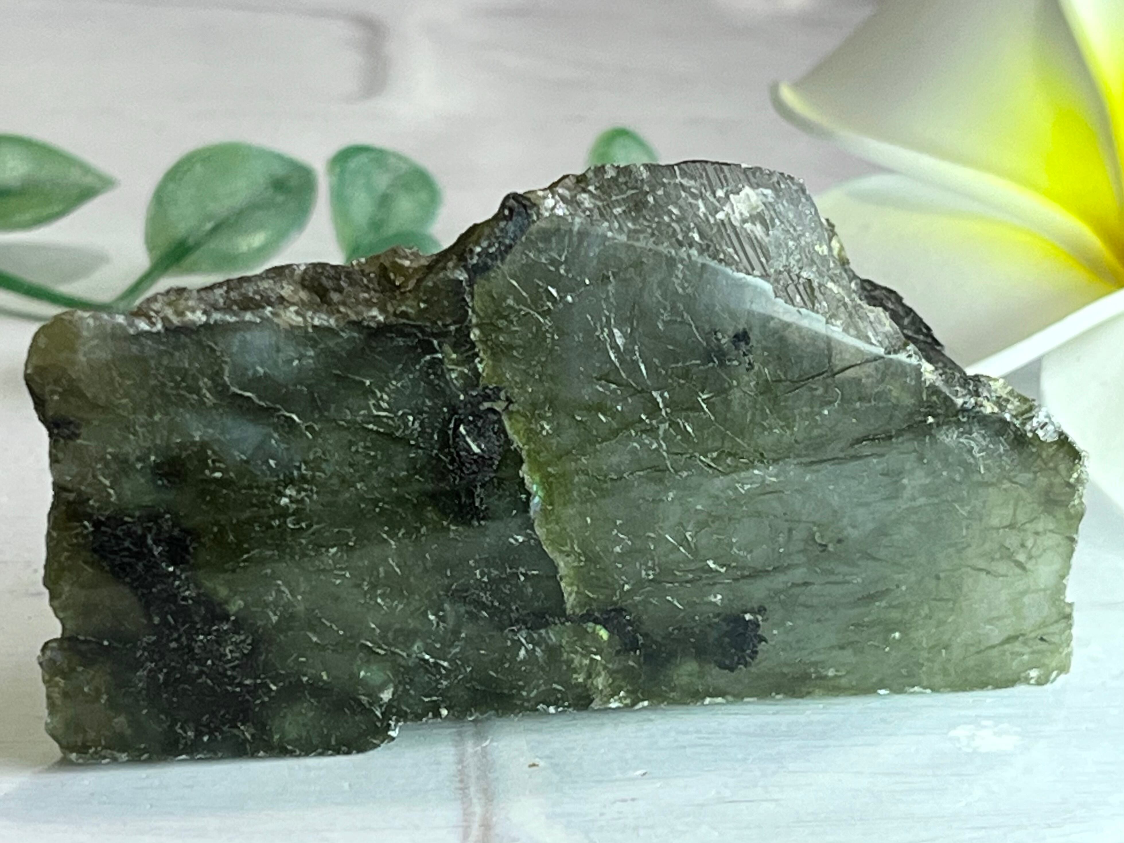美しいオリーブ色のラブラドライトの一面が磨かれた原石です˚✧₊⁎
