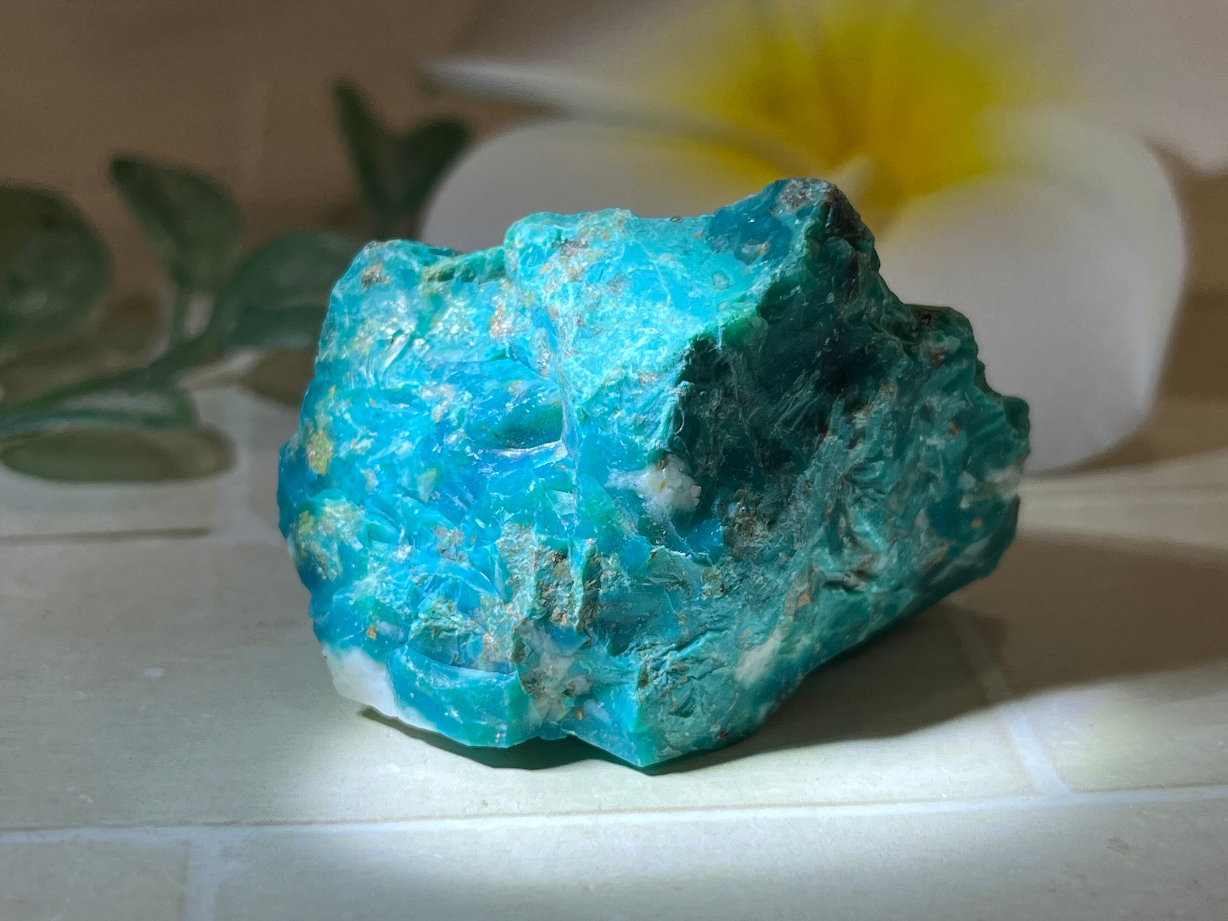 目の覚めるようなターコイズブルーのクリソコラのラフストーンです✨