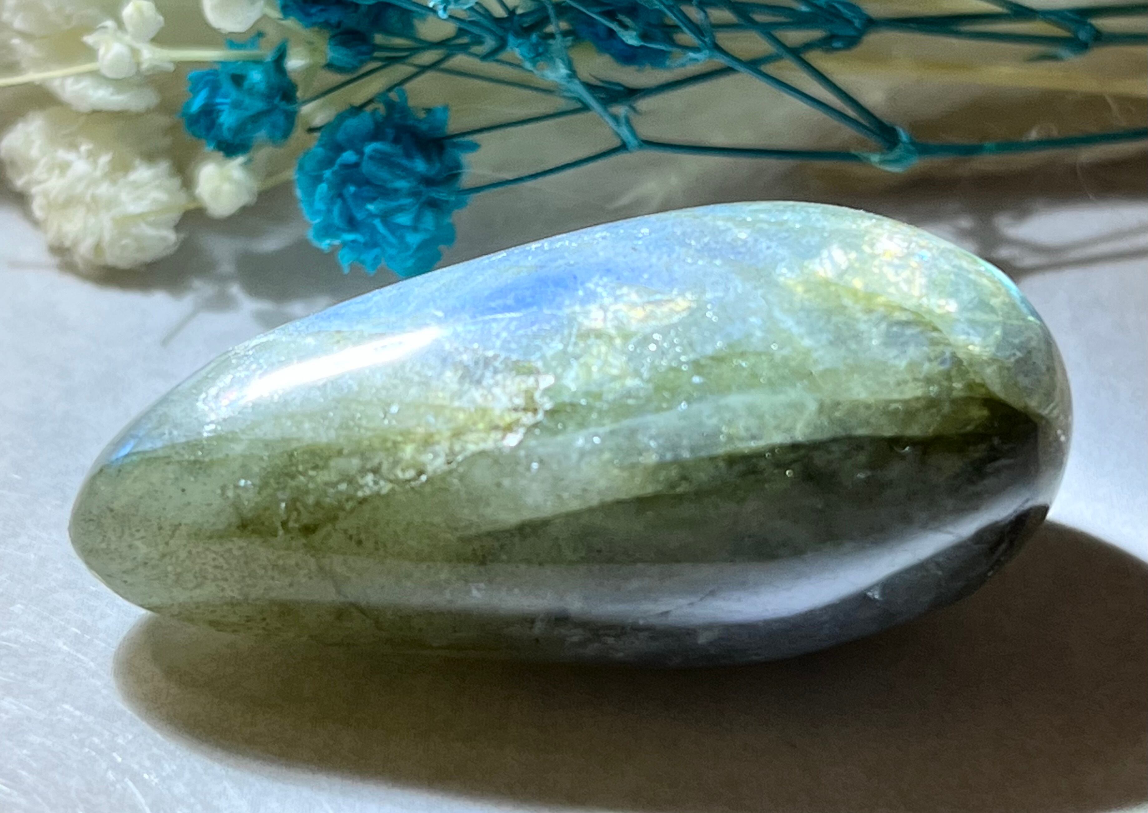 ドロップ型で上品な風合いのラブラドライトのタンブルです- ̗̀꒰ঌ໒꒱ ̖́-